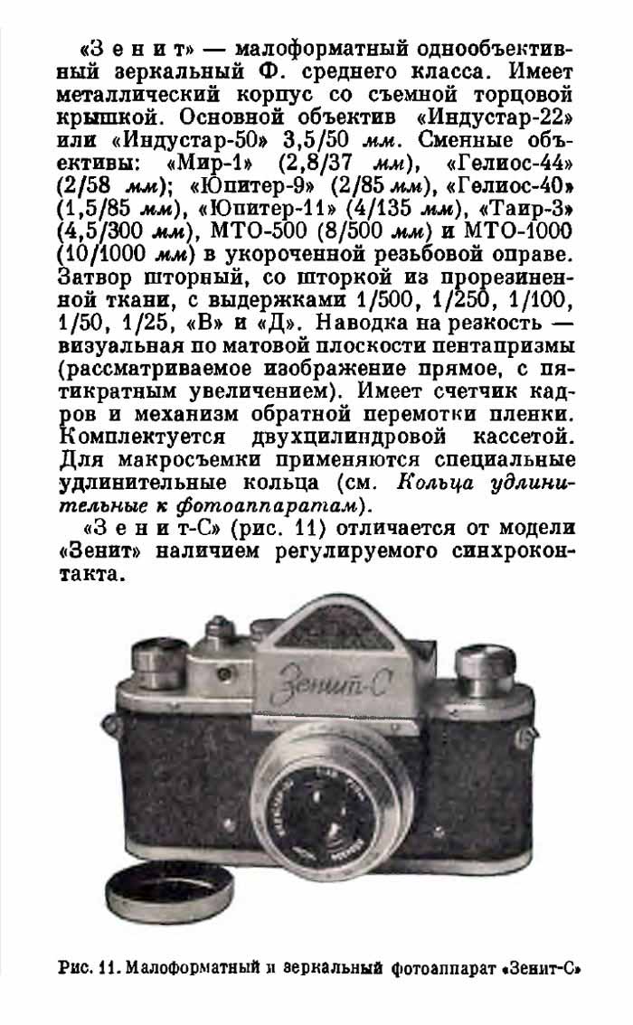 Инструкция по эксплуатации фотоаппарата "Зенит-С".