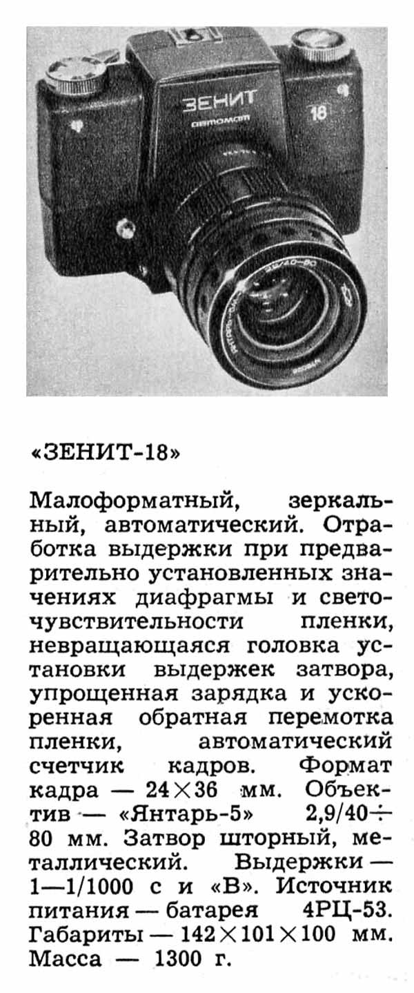 автоматический фотоаппарат "Зенит-18" выпускался с 1980 по 1987 годы на
