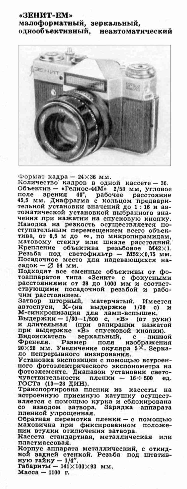 "Зенит-ЕМ" выпускался с 1972 по 1988 годы Красногорским механическим заводом.