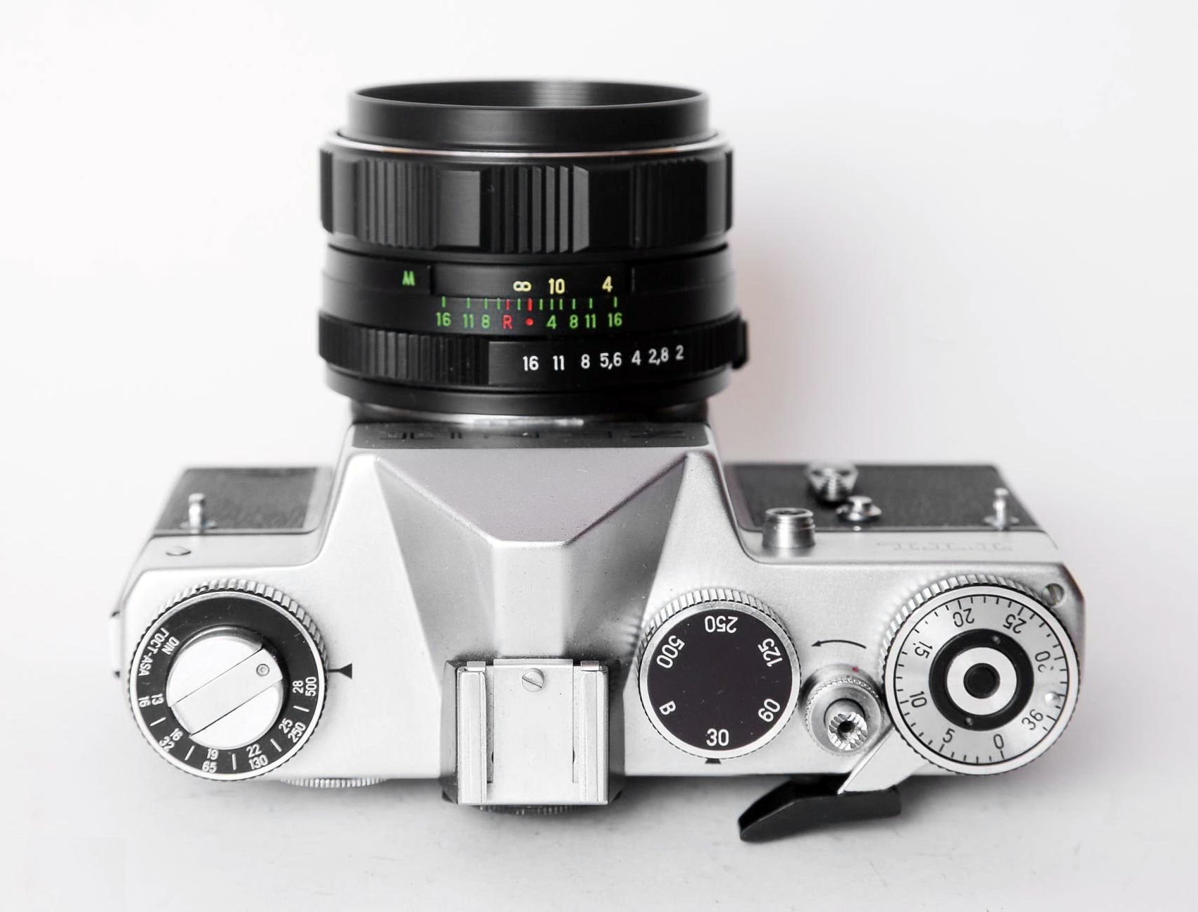 для импульсных фотовспышек, автоспуск. Резьба типа М42х1 для сменных объективов,