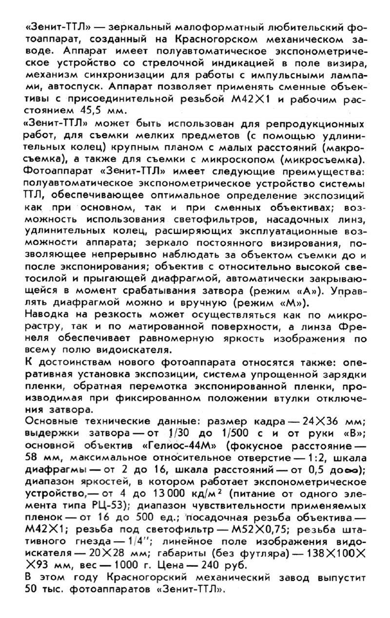 с 1977 года КМЗ. "Зенит TTL" малоформатный любительский фотоаппарат, работающий