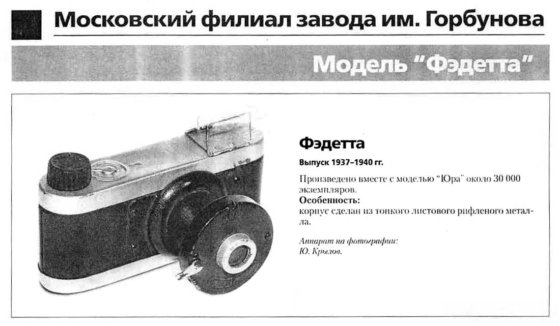 фотоаппарат "Фэдетта" производился с 1938 года Московским филиалом завода