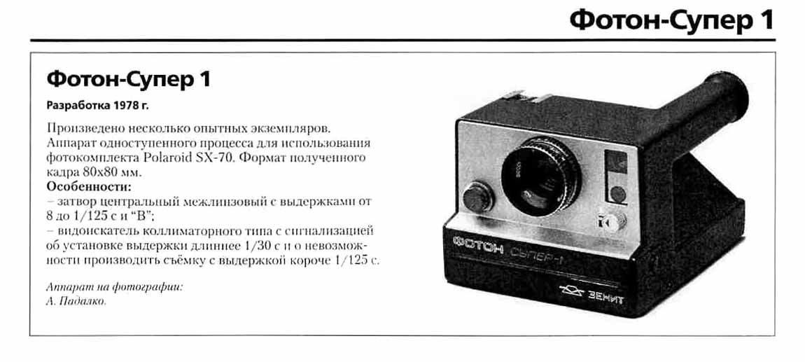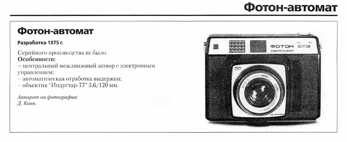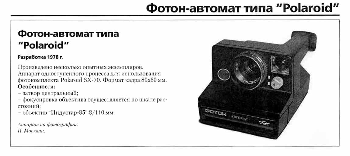 (1978), "Фотон-автомат" типа "Поляроид" (1978) были разработаны, но не