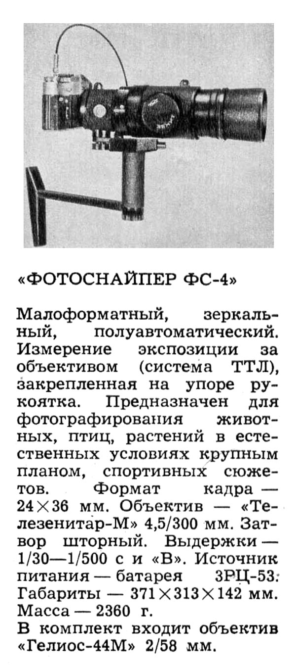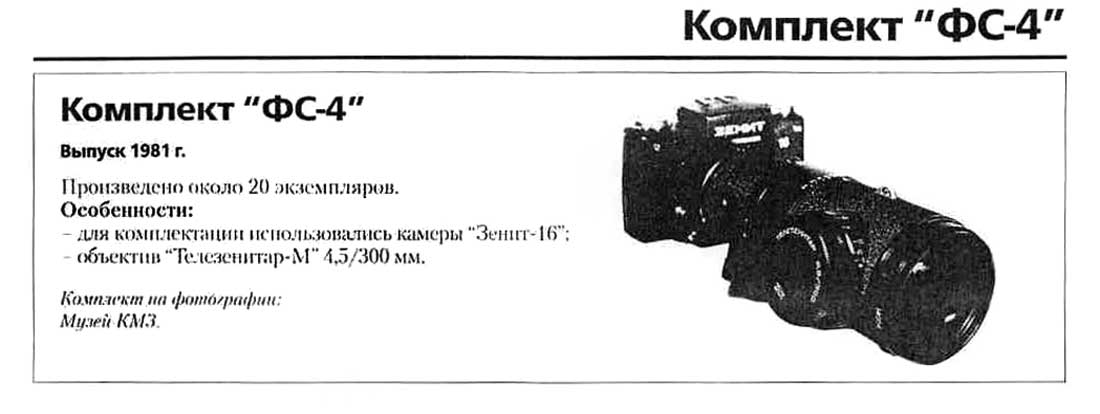 "ФС-4" опытно (20 штук) выпущен в 1981 году на КМЗ. Для съёмки удалённых