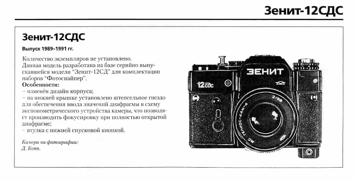 из каталога-классификатора "1200 фотоаппаратов из СССР" Виктора