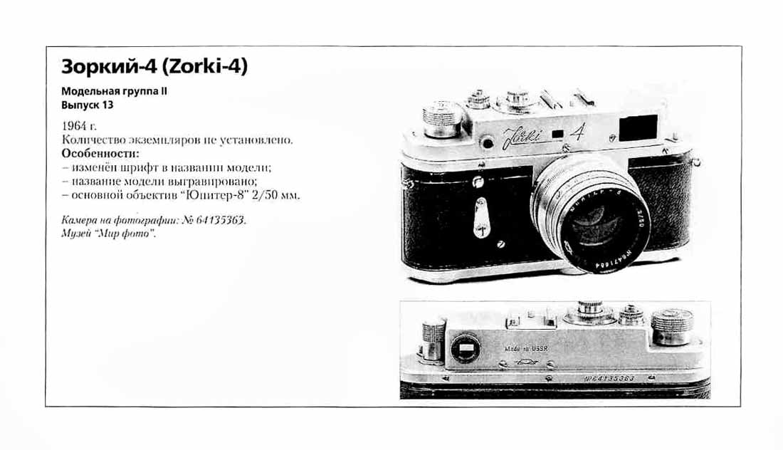 Московской области. "Зоркий-4" - это дальномерный малоформатный фотоаппарат,