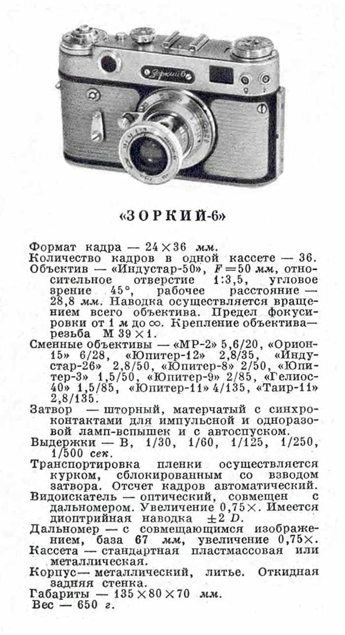 по эксплуатации фотоаппарата "Зоркий-6".