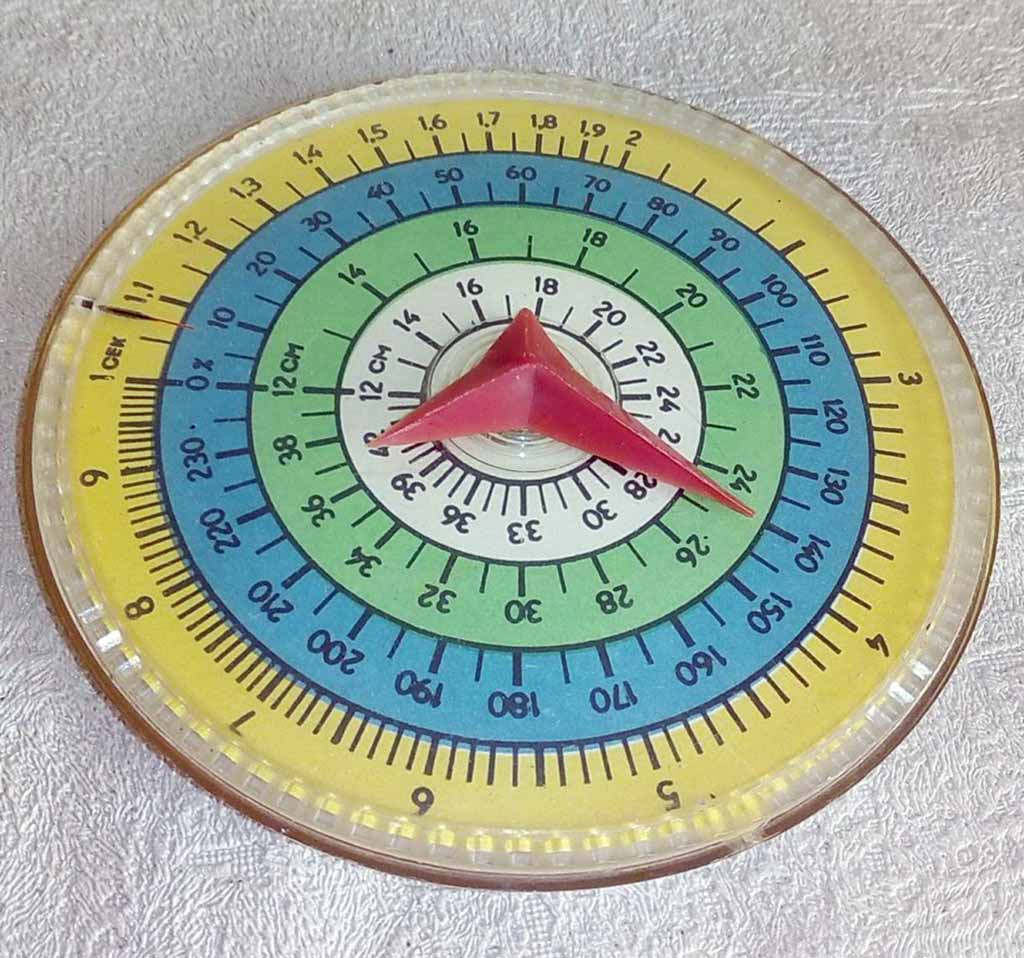 Калькулятор выдержек для цветной и чёрно-белой фотопечати выпускал возможно с 1969 года Черкасский завод "Фотоприбор", Украина.