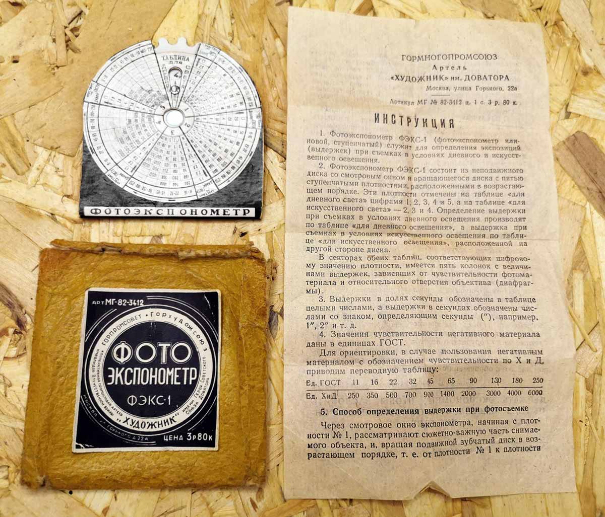 октябрь", "Художник" и "25 лет Октября". Экспонометр состоит из картонной