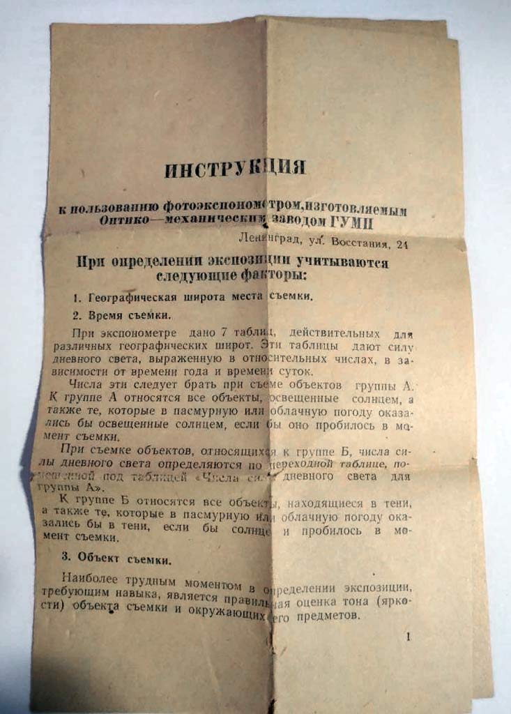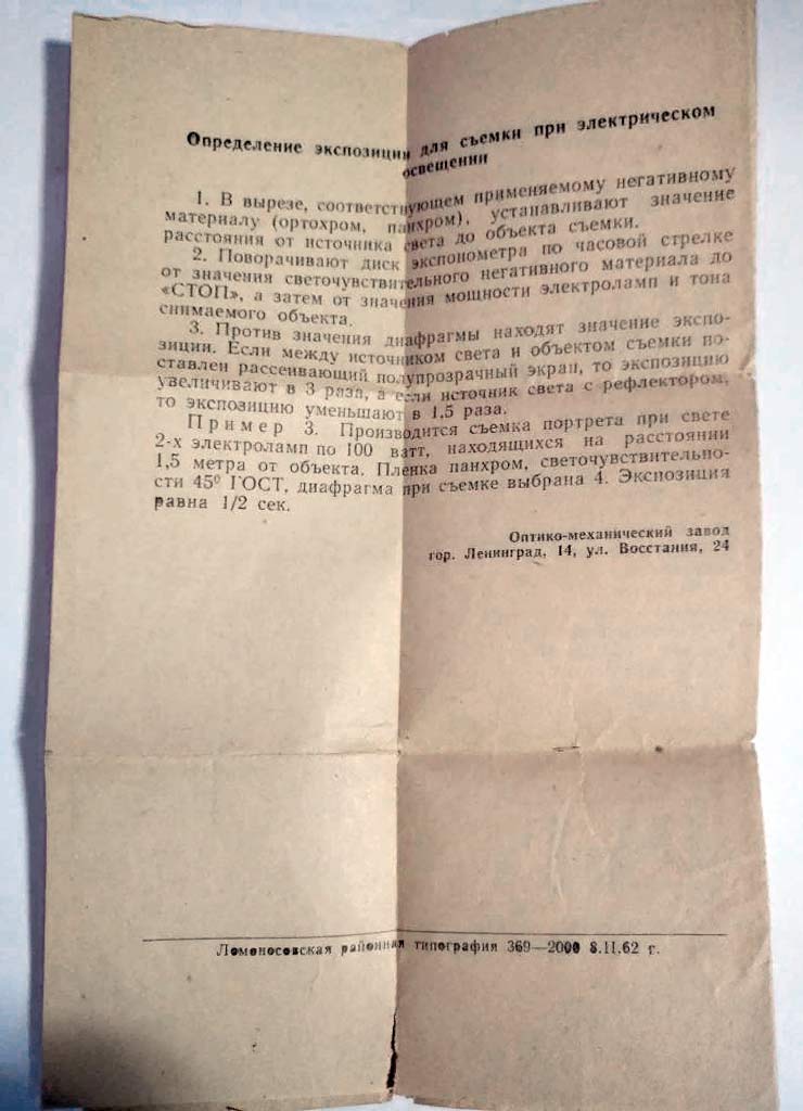 Фотоэкспонометр на бумажной основе с 1962 года выпускал Ленинградский оптико-механический завод ГУМП. Предназначен для определения экспозиции при съёмке.