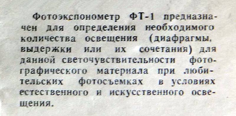 Фотоэкспонометр "ФТ-1" возможно с 1965 года выпускал Луцкий электроаппаратный завод. Предназначен для определения экспозиции при фотосъёмке.
