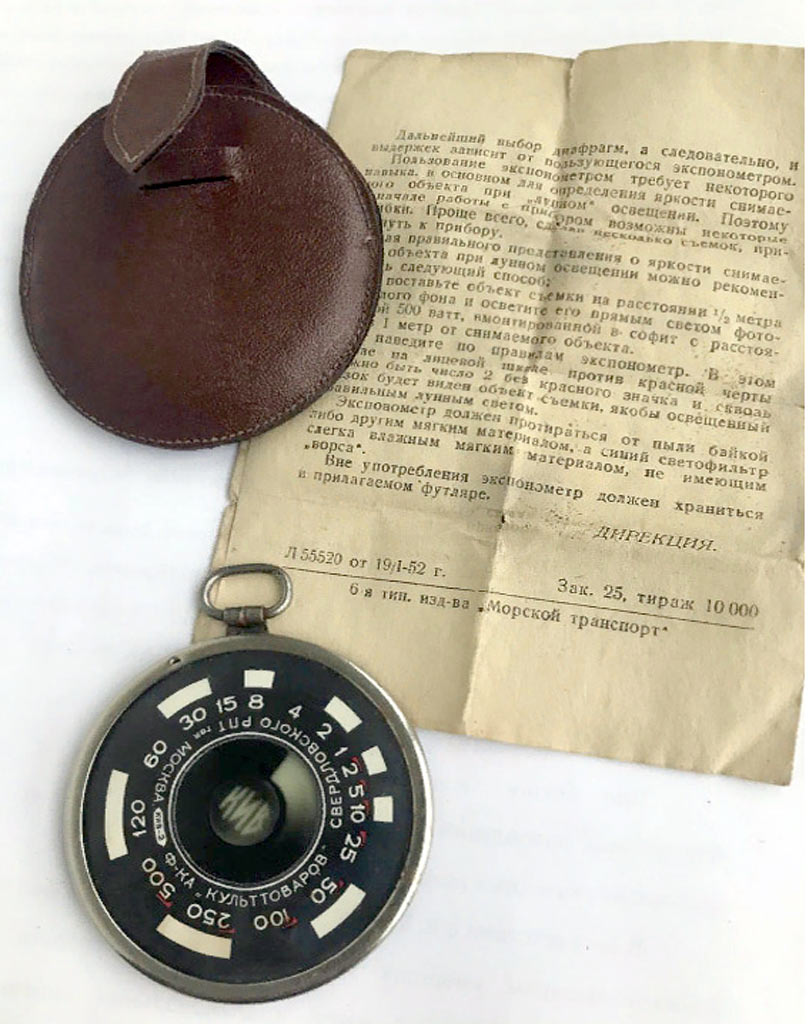 и металлического (калькулятора) для отсчета выдержки. Подробнее о фотоэкспонометре