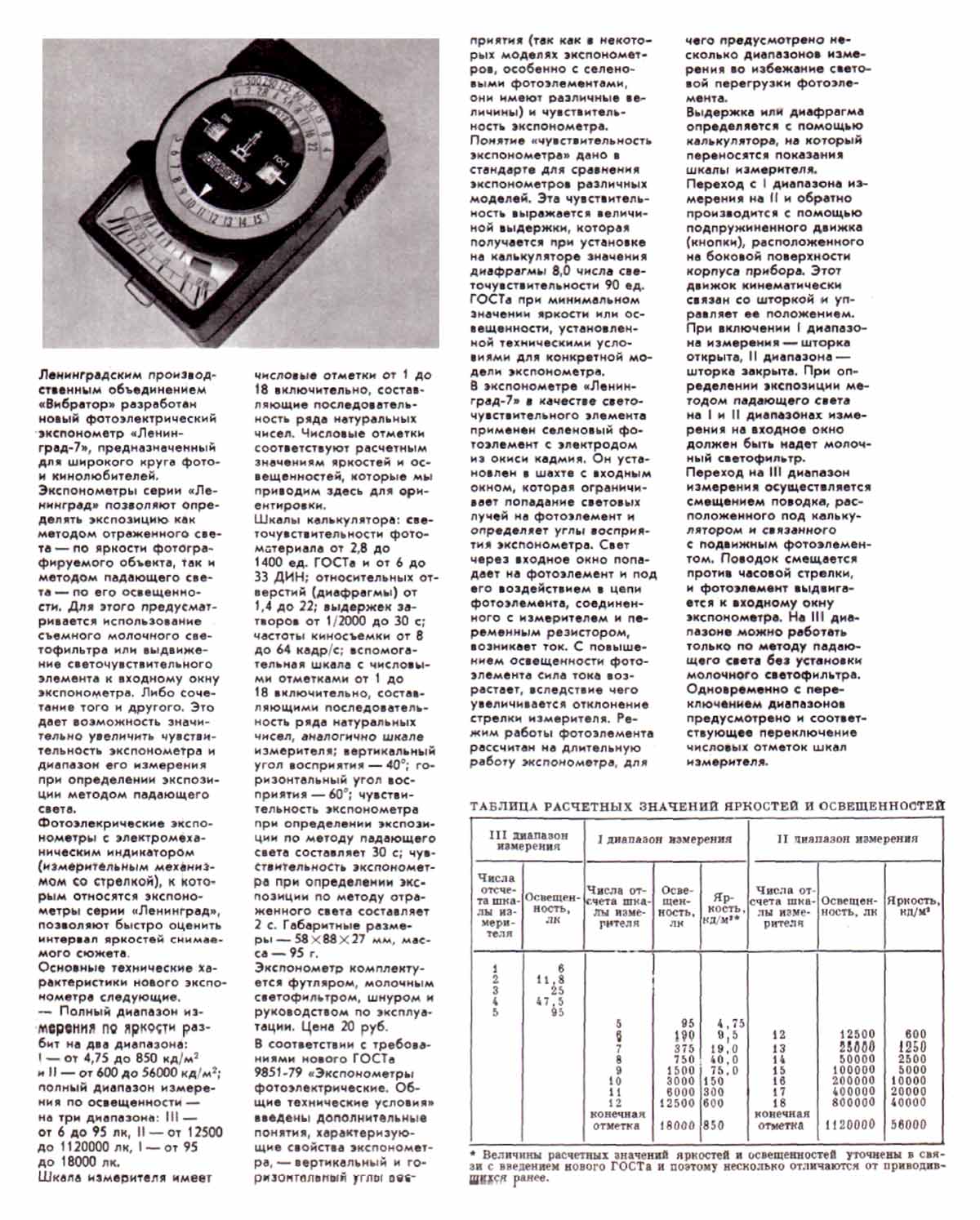 фотоэкспонометра "Ленинград-7" (https://fotoussr.ru/).