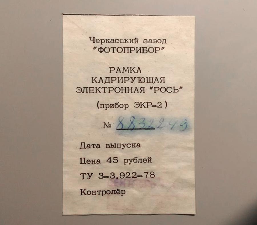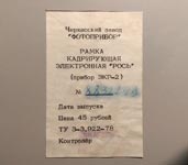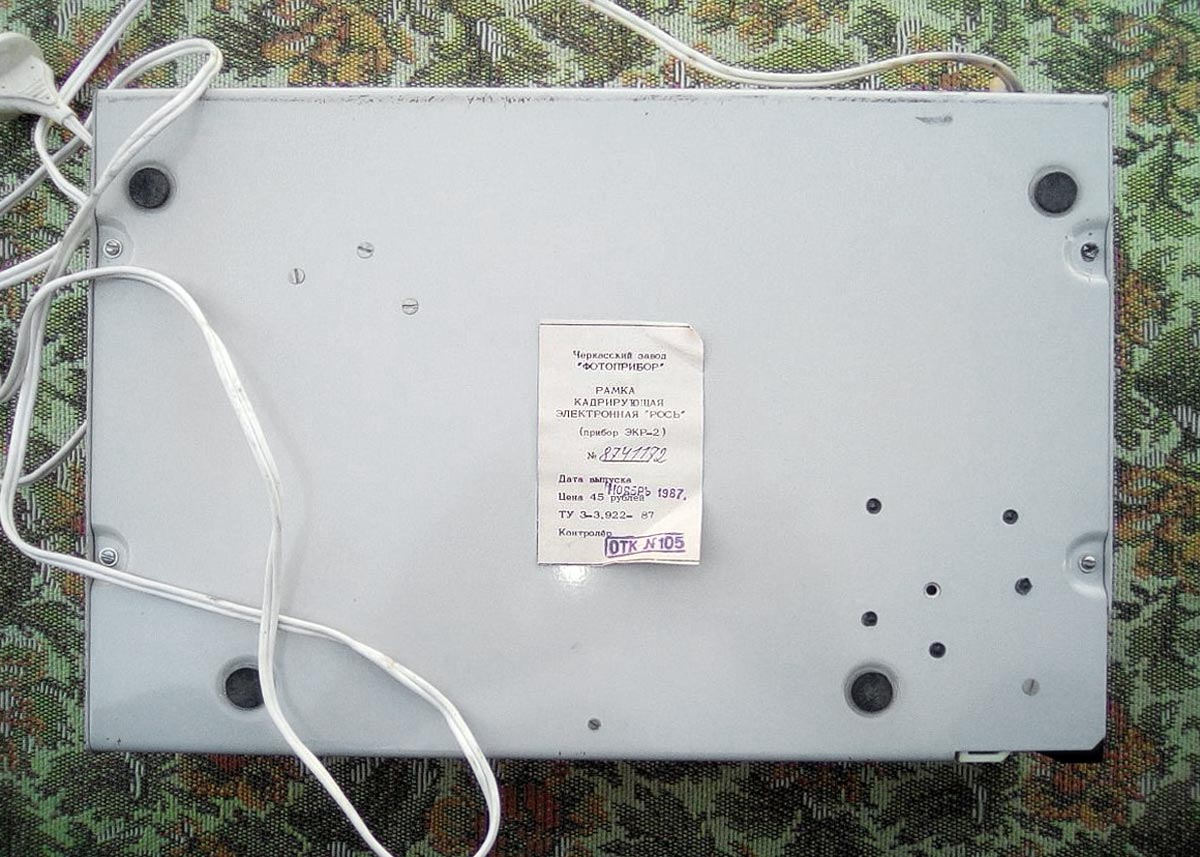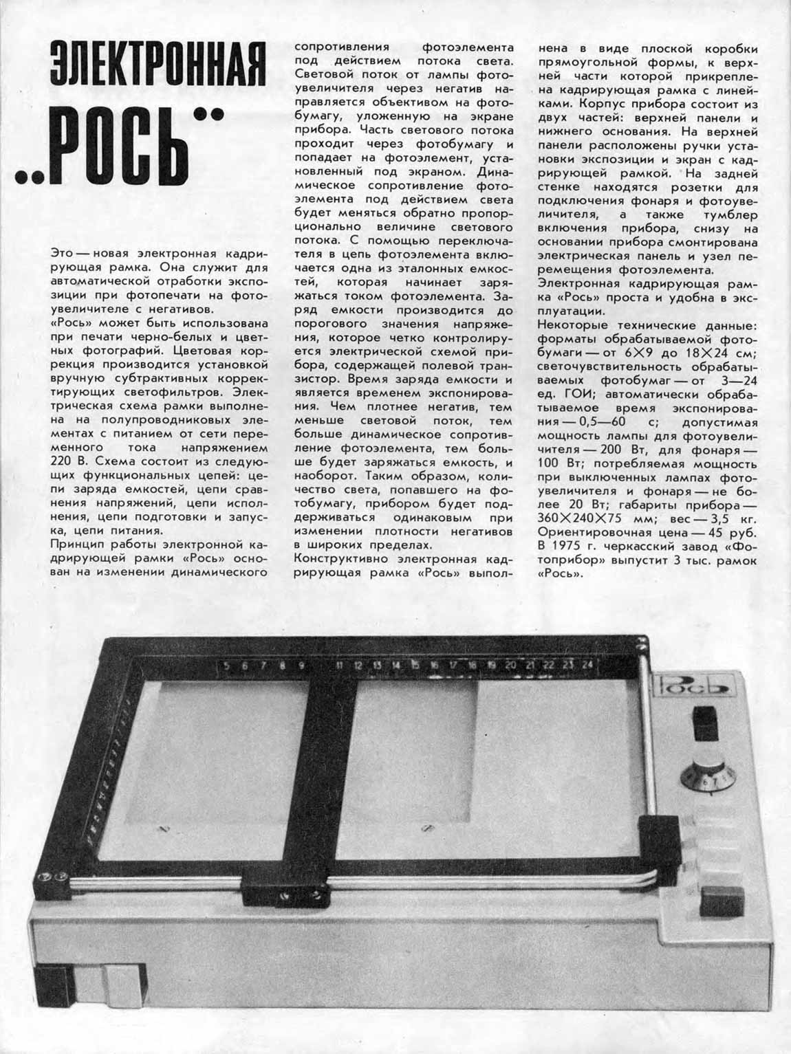 Рамка кадрирующая электронная "Рось" (прибор "ЭКР-2") выпускалась с 1975 года Черкасским заводом "Фотоприбор". Описание рамки внизу.