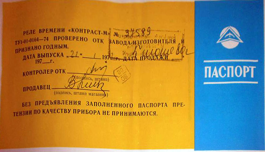года Тушинским машиностроительным заводом. Реле времени "Контраст-М" предназначено