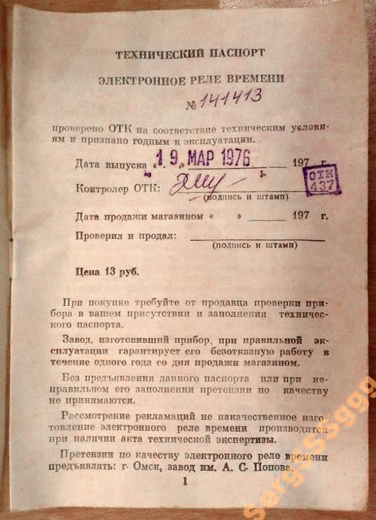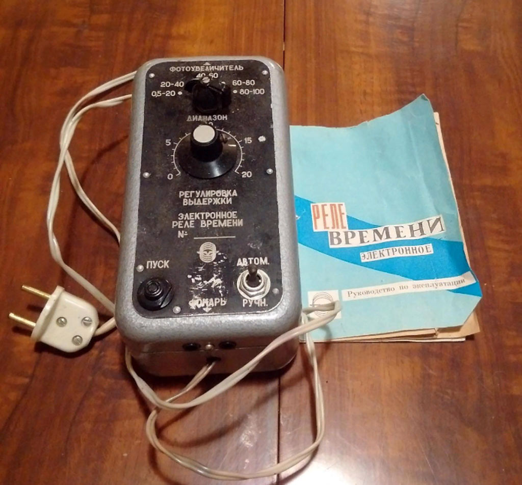 Реле времени электронное (без названия) выпускалось предположительно с 1971 года Омским заводом имени А.С.Попова. Информация - визуальная.