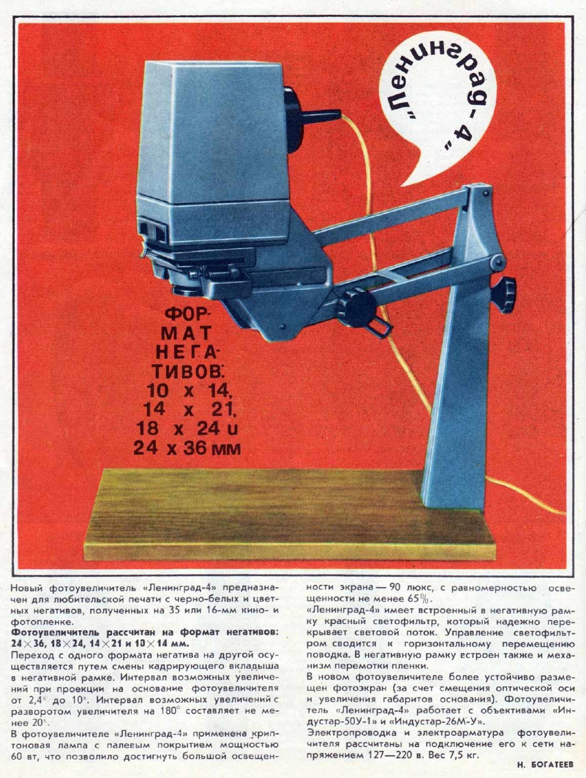 "Ленинград-4" выпускался с 1970 года в Ленинграде. Фотоувеличитель предназначен