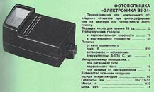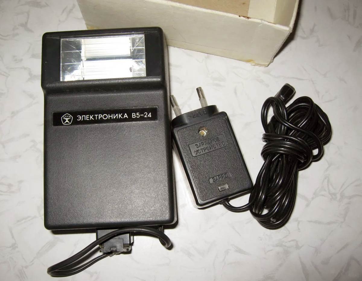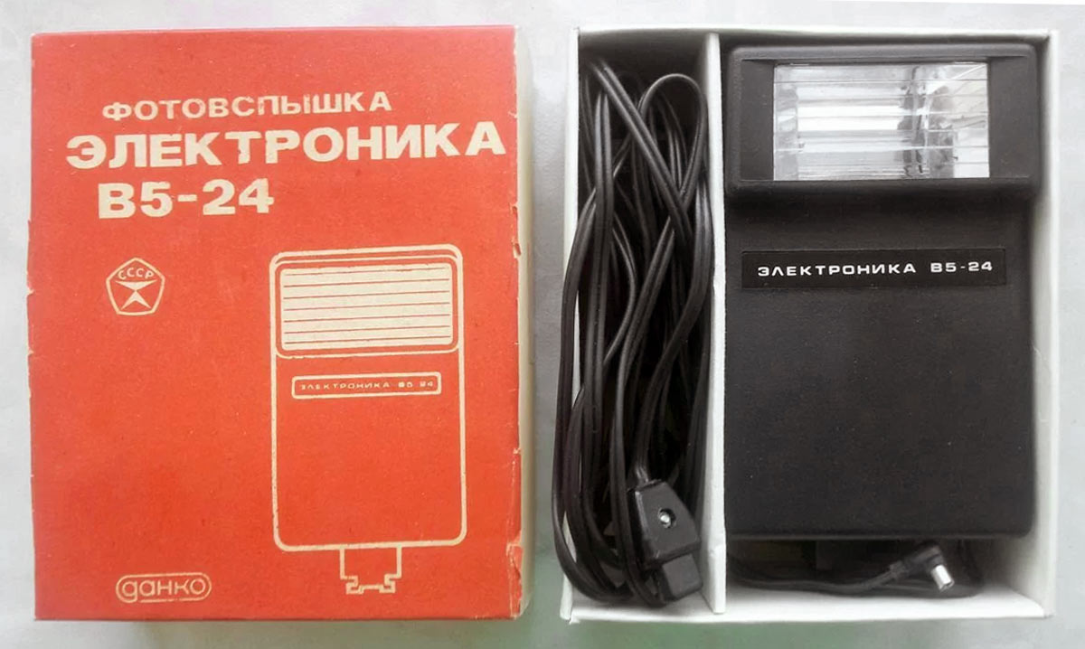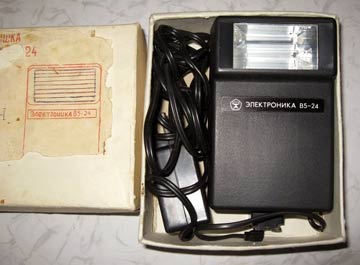 Фотовспышка "Электроника В5-24" выпускалась с 1981 года. Фотовспышка предназначена для мгновенного освещения объектов при фотографировании.