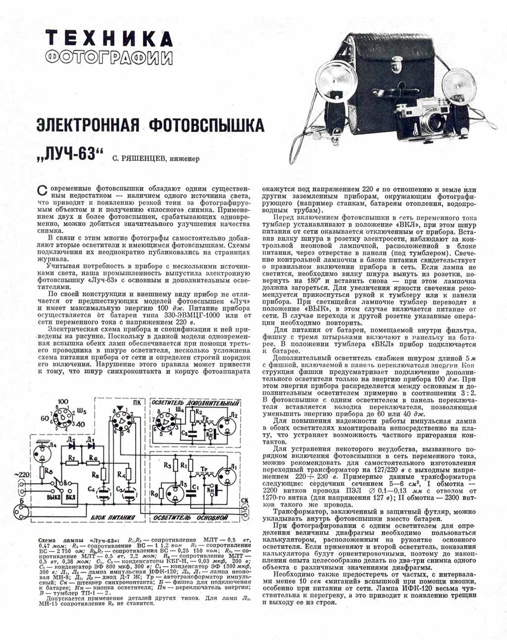 "Луч-63" - отличается от предыдущих фотовспышек типа "Луч" возможностью