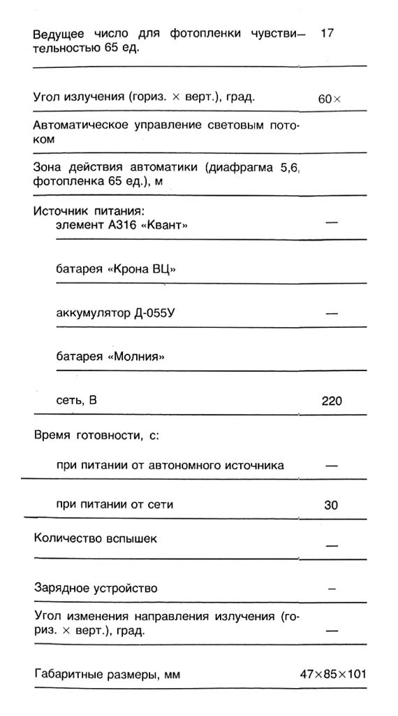 Номинальная энергия 36 Дж. Ведущее число для плёнки 65 ед. - 17. Угол рассеивания