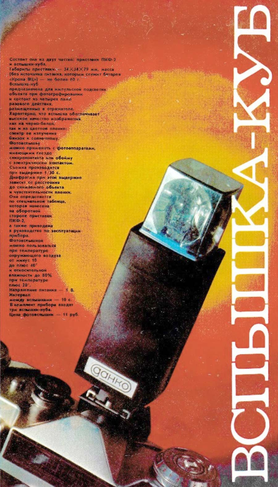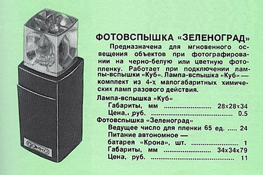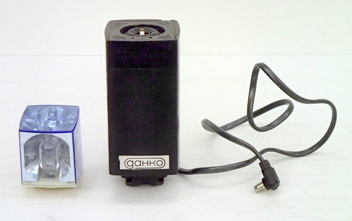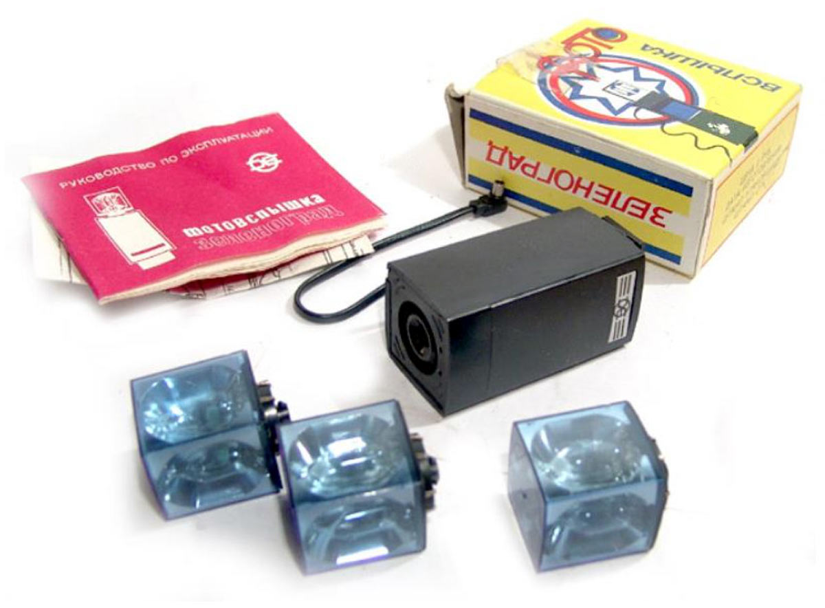 Фотовспышка состоит из двух частей, приставки "ПКФ-2" и вспышки - куба.