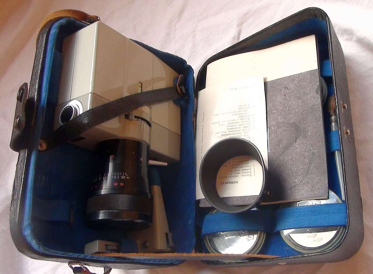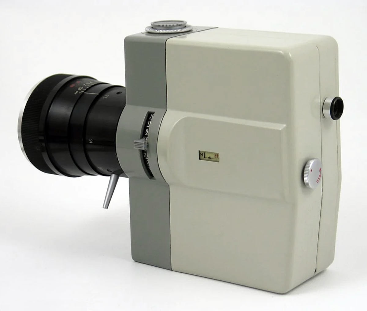 исключает возможность ошибки в экспозиции. Кинокамера снабжена объективом