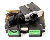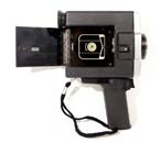 киноплёнке типа "С" 1 х 8 мм. Зарядка кассетная на 15 метров плёнки. Привод