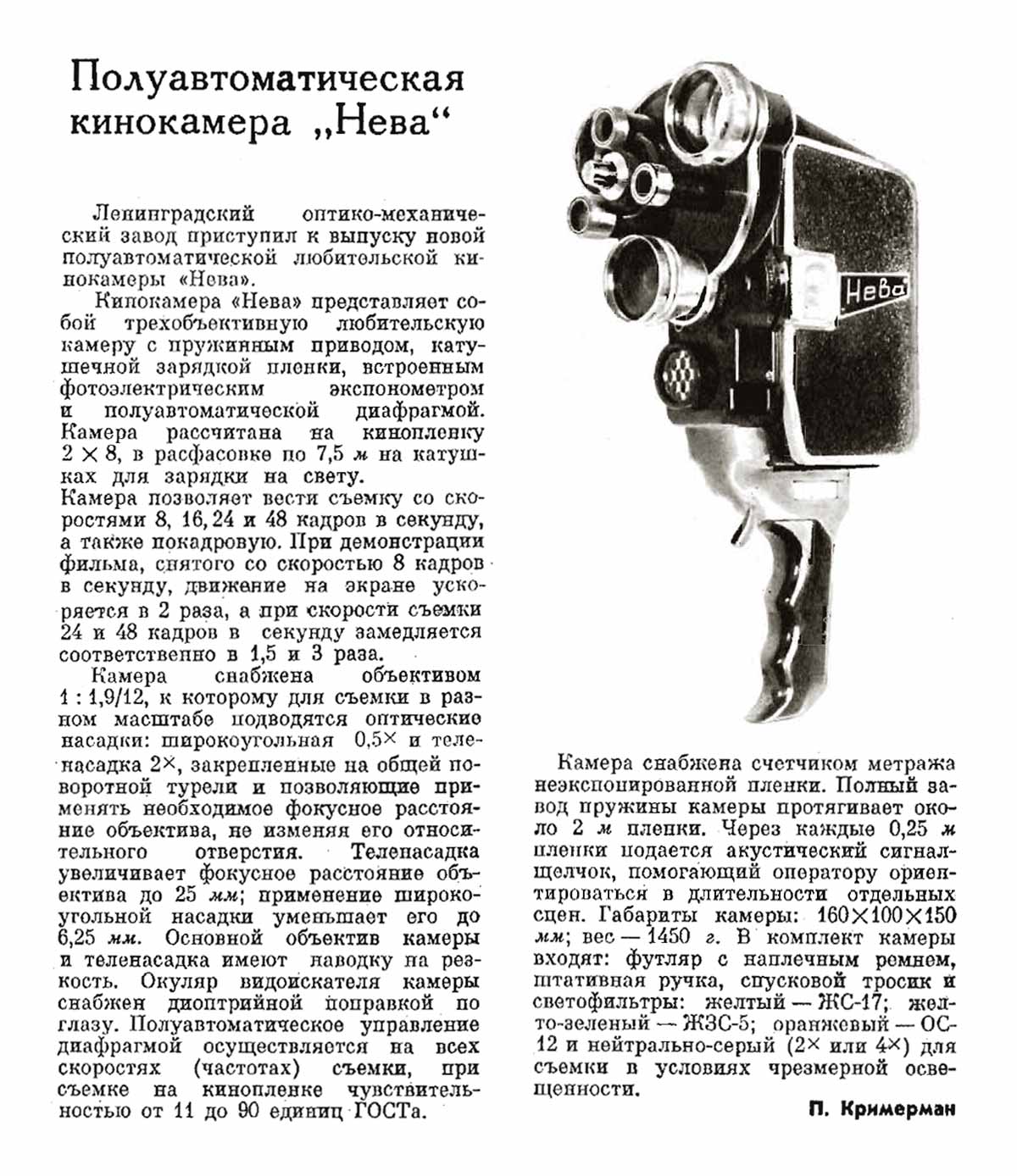 с 1960 по 1963 годы Ленинградским ГОМЗ. Предназначен для съёмки на кинопленку