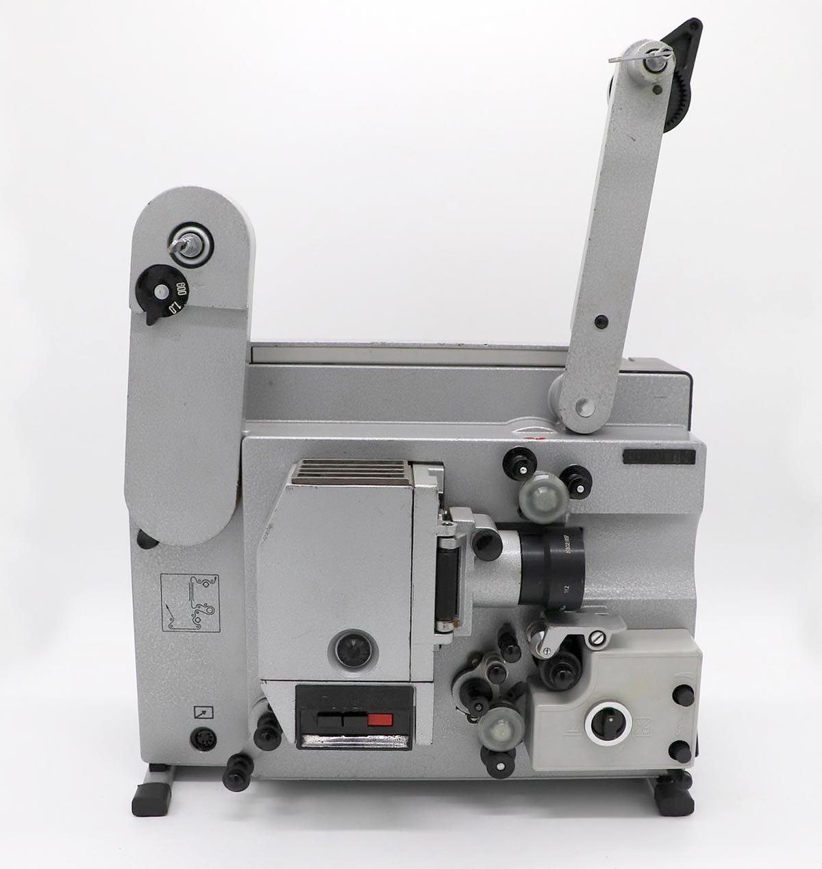 бобинами до 600 метров. Скорость проекции 24 к/сек. Усилитель и громкоговоритель