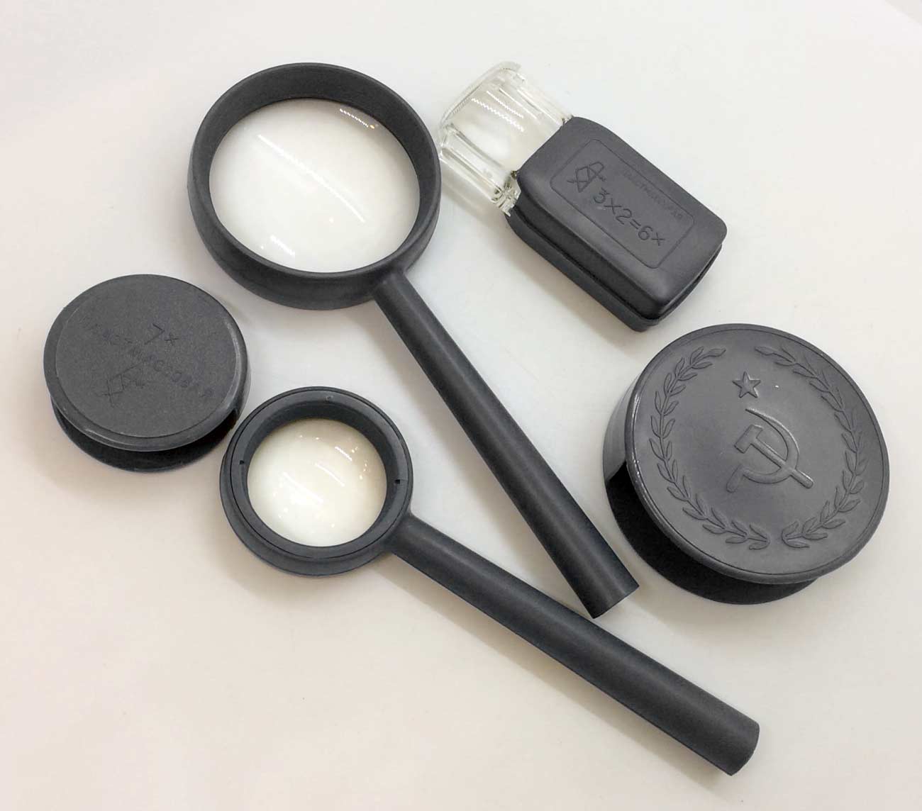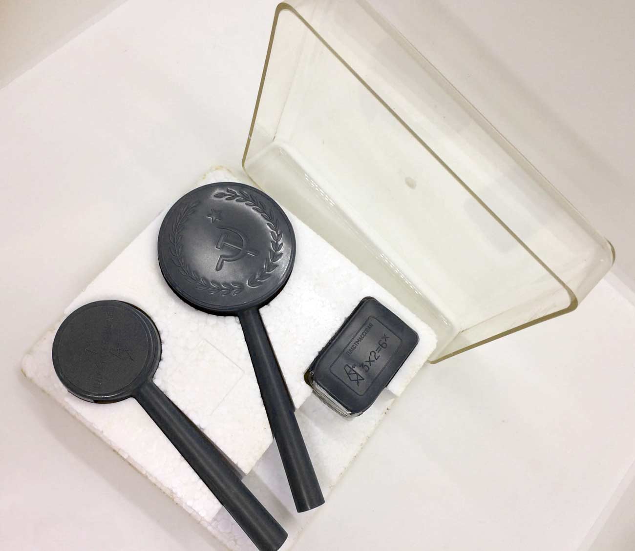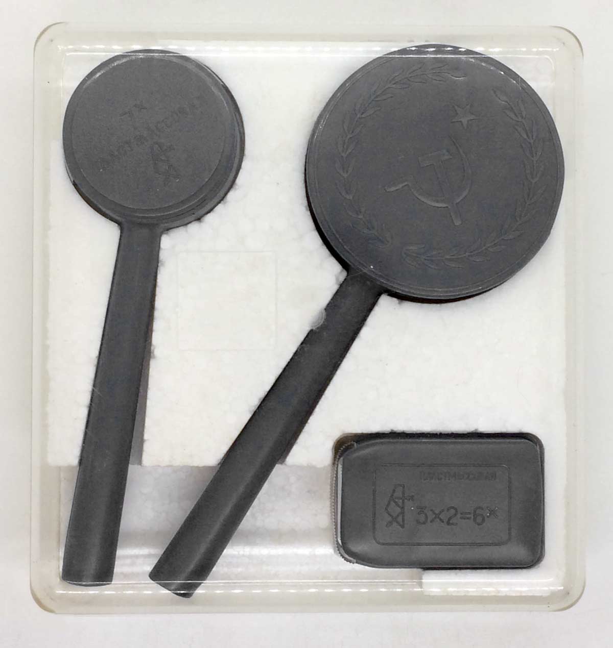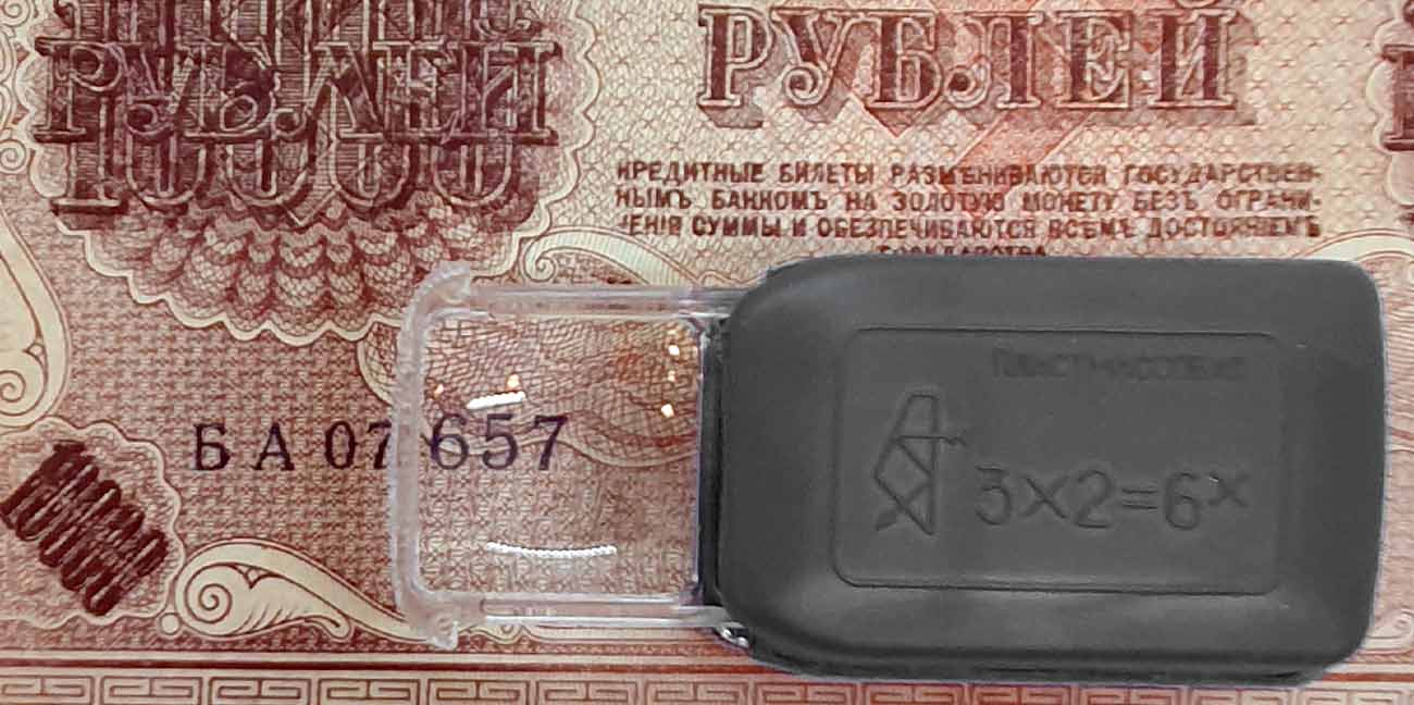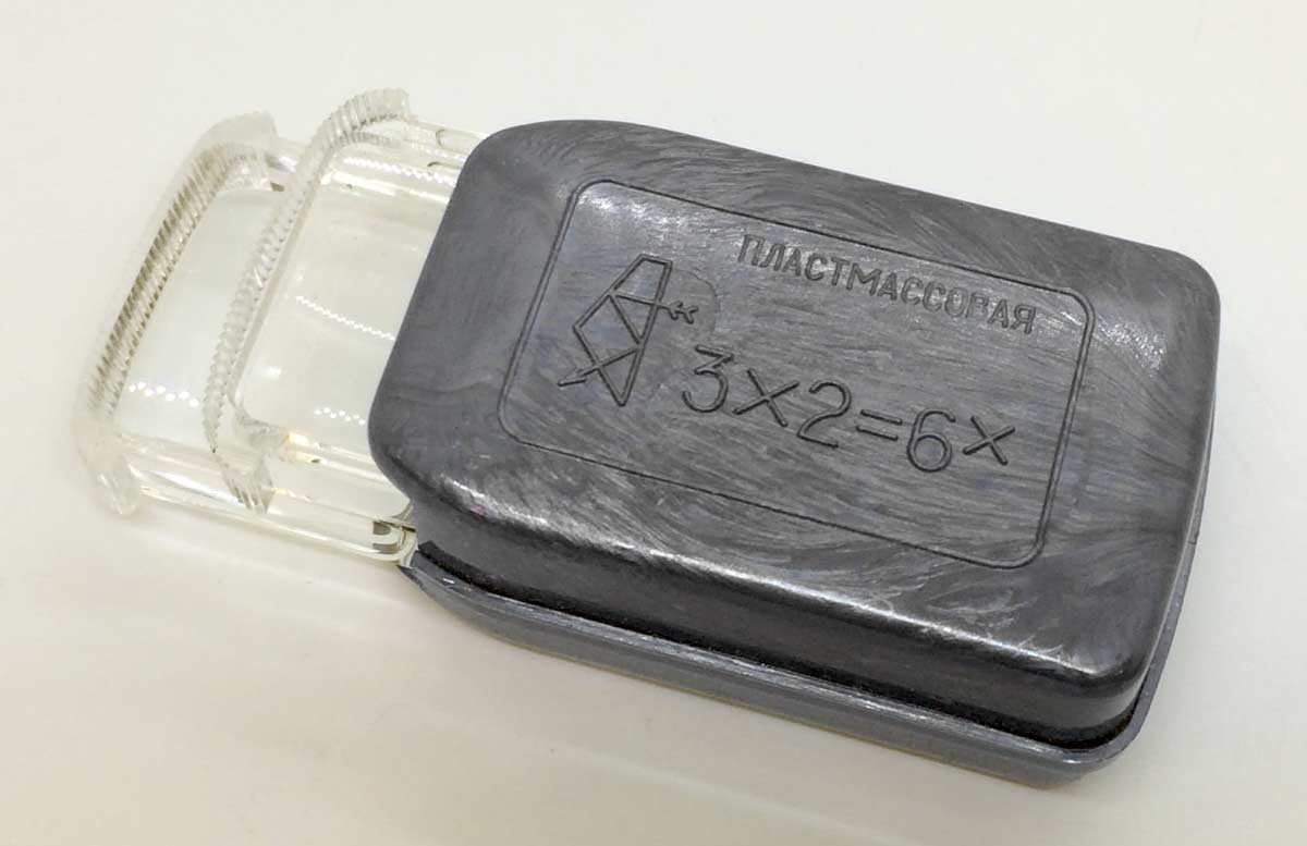Набор луп 3,5х, 7х и 3х2=6х выпускался возможно с 1940 года Казанским Оптико-Механическим заводом № 237. Для рассмотрения мелких деталей, например в часах или рисунков на почтовых марках, деньгах...
