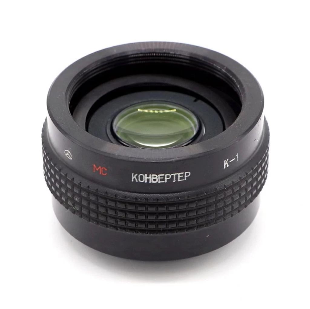 Конвертер "К-1" выпускался с 1987 года Киевским заводом "Арсенал". Резьба М42. Увеличивает фокусное расстояние в 2 раза, прыгающая диафрагма, удобен для макросъёмки.