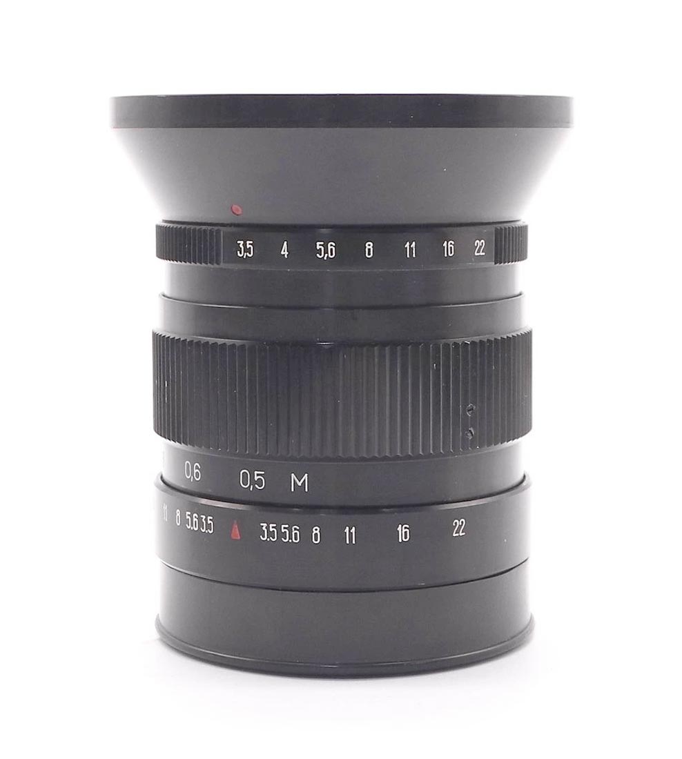 рабочий отрезок: 74,1 мм; относительное отверстие: 1:3,5; пределы шкалы