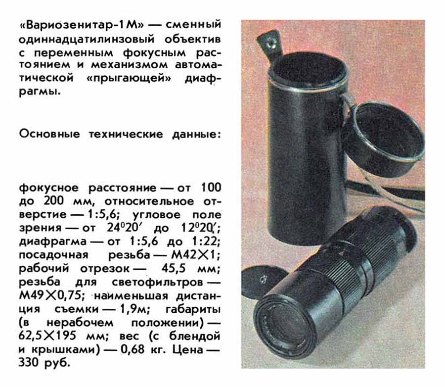 Объектив "Вариозенитар-1М" поготовлен к выпуску в 1977 году Красногорским механическим заводом.