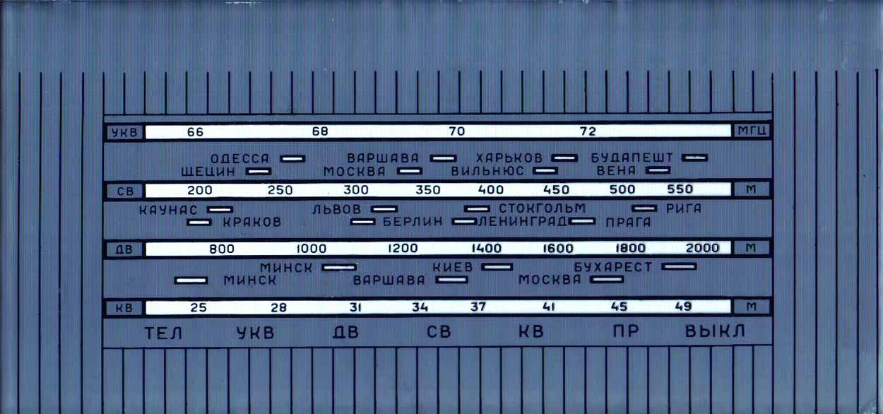 по вертикали 500, горизонтали 450 линий. Радиоприёмник имеет 4 диапазона: