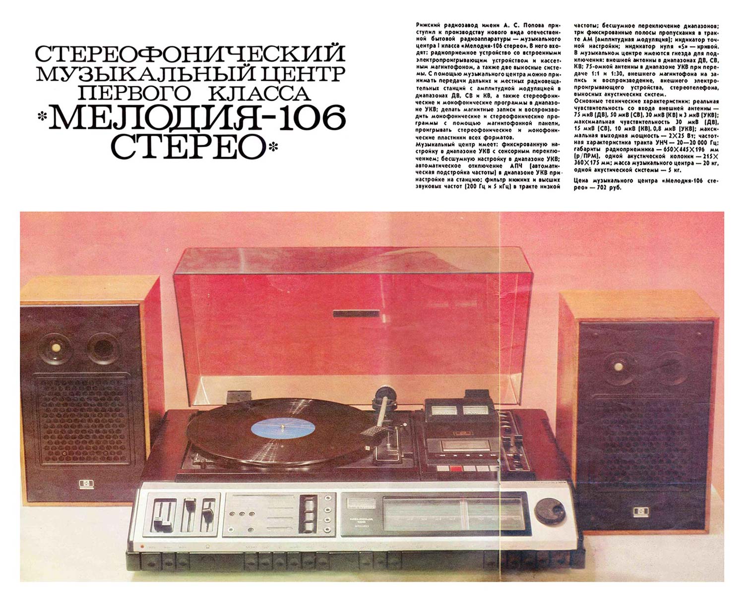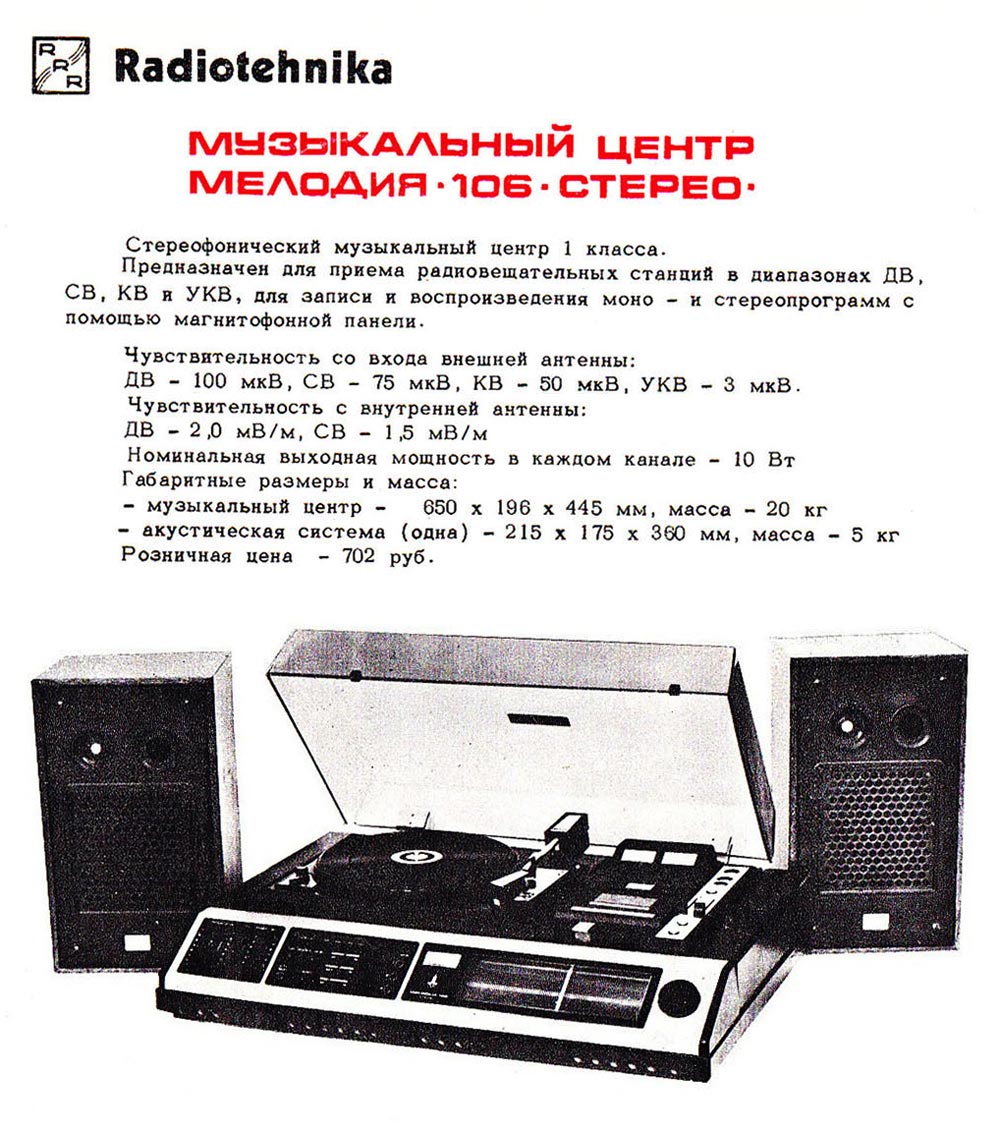 центр "Мелодия-106 стерео" с 1978 года выпускал Рижский радиозавод имени
