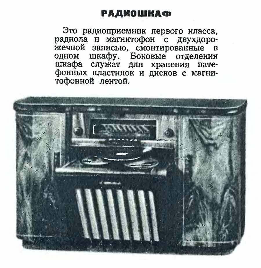 Радиошкаф разработан в 1954 году отечественной радиопромышленностью. Информация и фото из журнала "Техника молодёжи № 9 за 1954 год. Сгенерированное ИИ изображение для сайта предоставил Олег Лимонов.