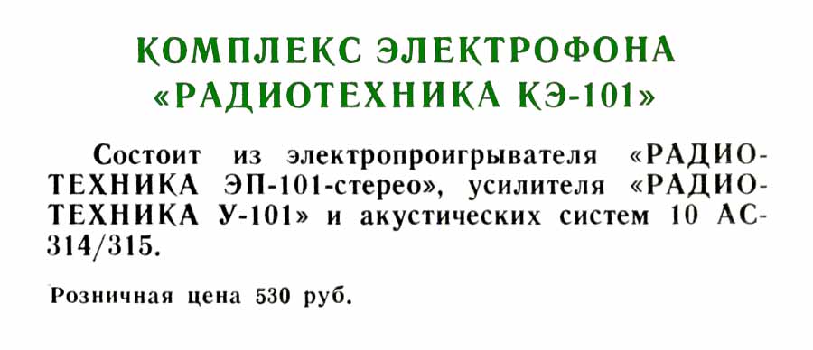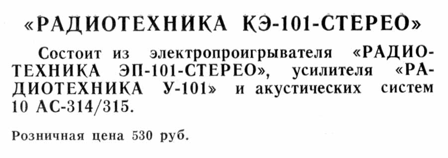 "КЭ-101-СТЕРЕО" производился с 1985 года Рижский радиозавод имени А. С.