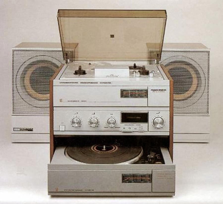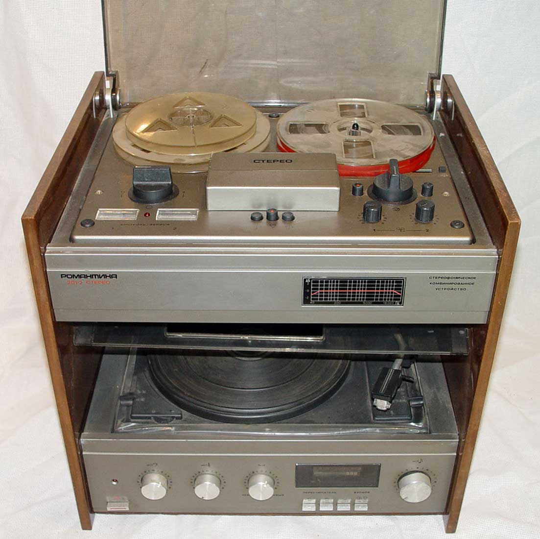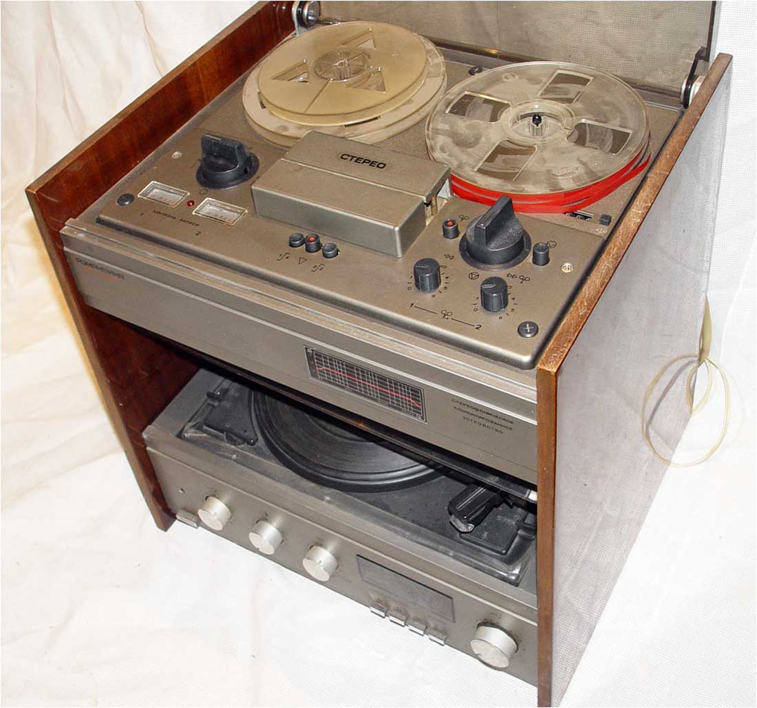 из четырёхдорожечного катушечного магнитофона, электропроигрывающего устройства