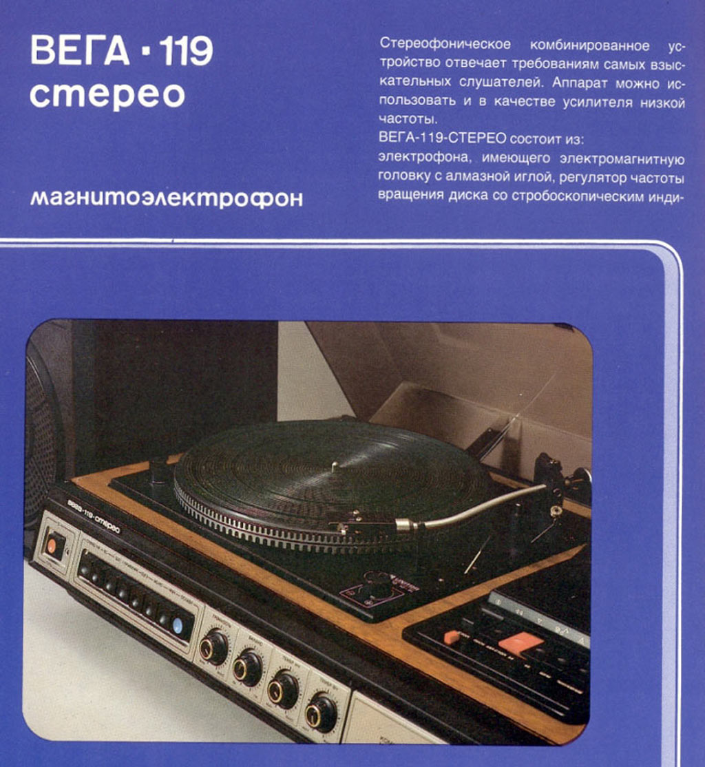 устройство - магнитоэлектрофон "Вега-119-стерео" с начала 1986 года выпускало