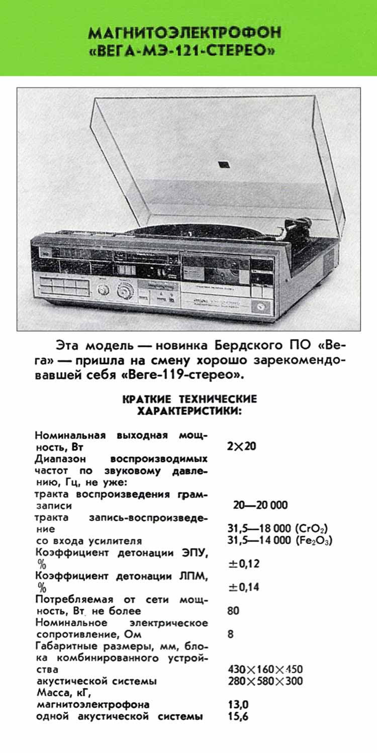 Магнитоэлектрофон "Вега МЭ-121С" должен был сменить модель "Вега-119С".