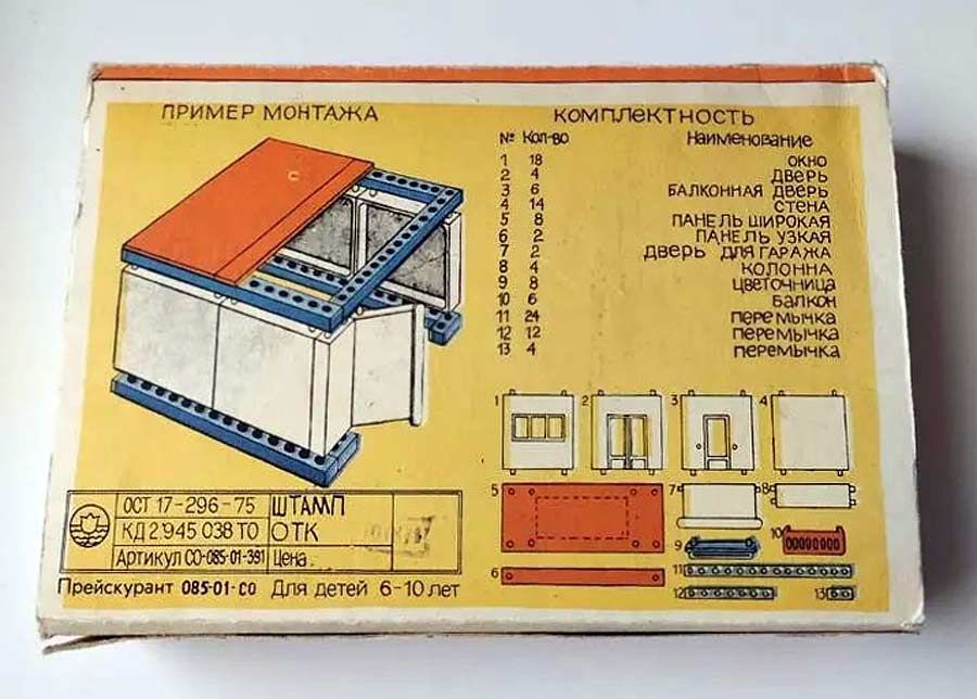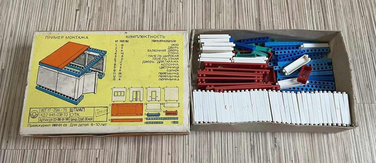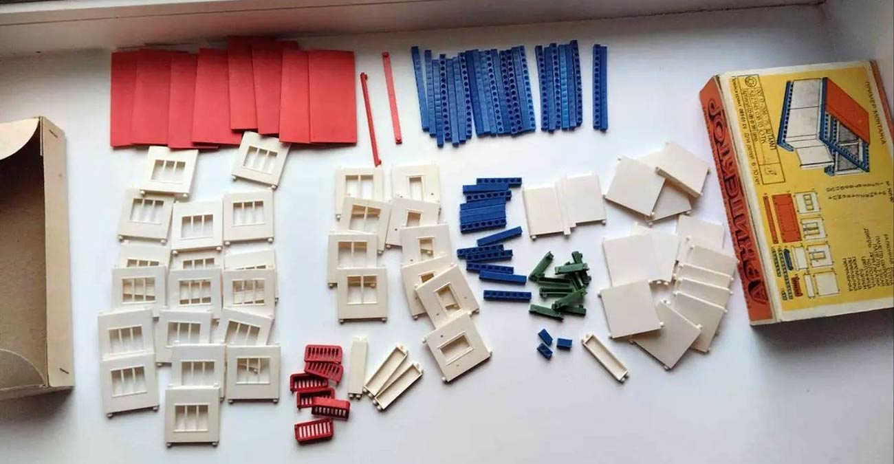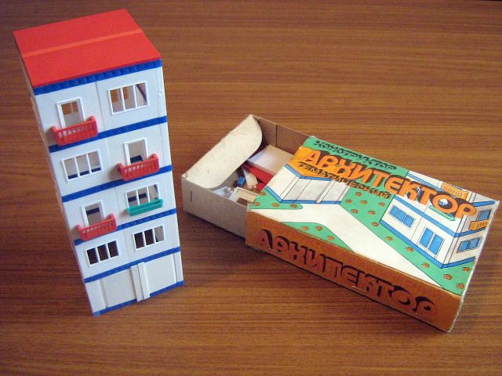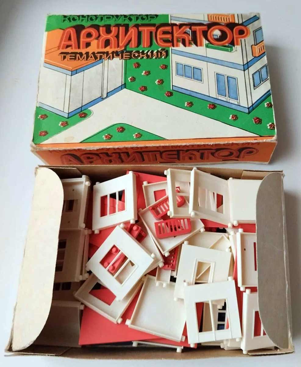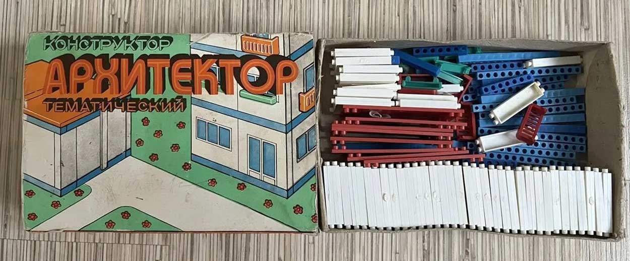 Конструктор тематический "Архитектор" выпускали возможно с 1977 года. Конструктор предназначен детям от 6 до 10 лет для сборки моделей домов различной этажности, гаражей, подсобных помещений и т.д.