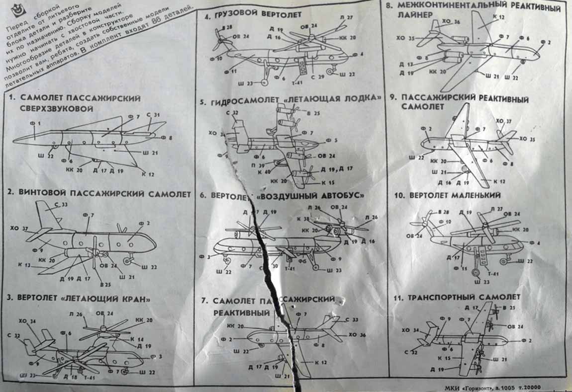 "Авиа конструктор" производился предположительно с 1979 года Московским опытно экспериментальным заводом "Огонёк". АК предназначен детям от 7 до 10 лет для сборки 11 моделей самолётов и вертолётов.