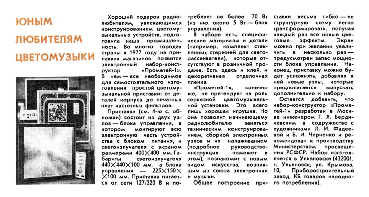 набор-конструктор "Прометей-1" с 1977 года выпускал Ульяновский приборостроительный