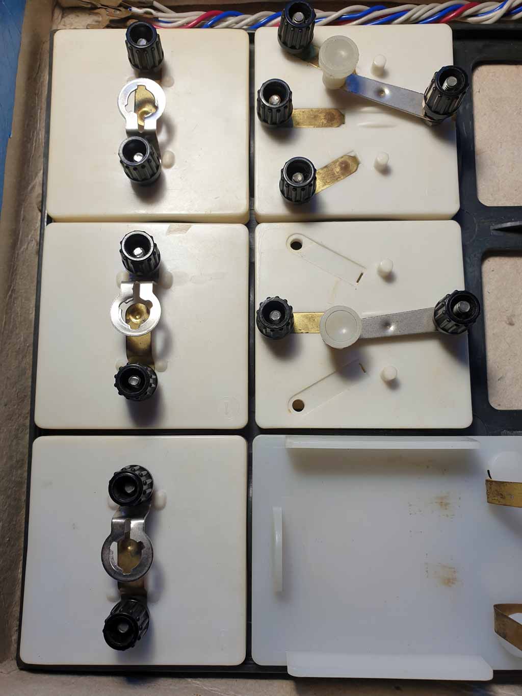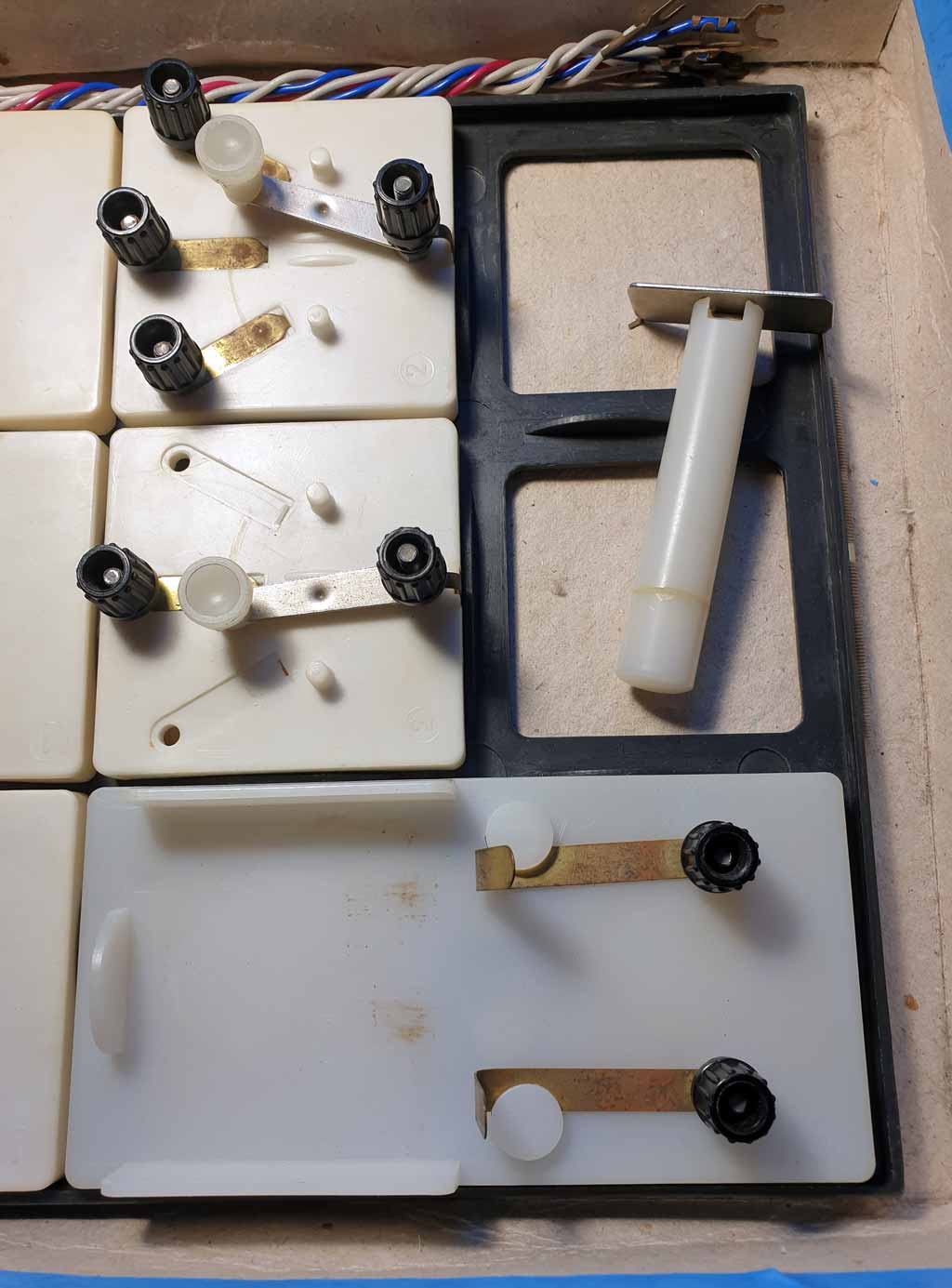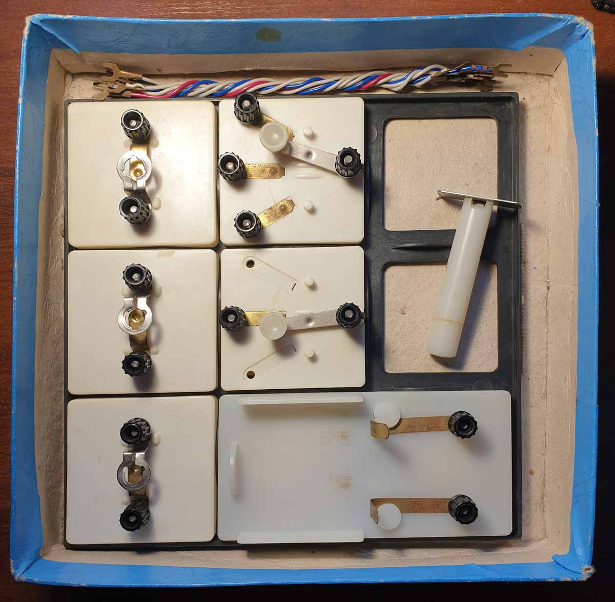 батареи, телеграфный ключ, переключатели, патроны для