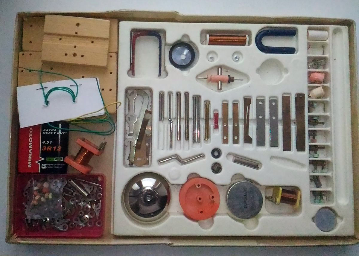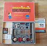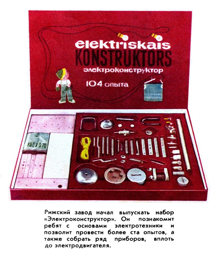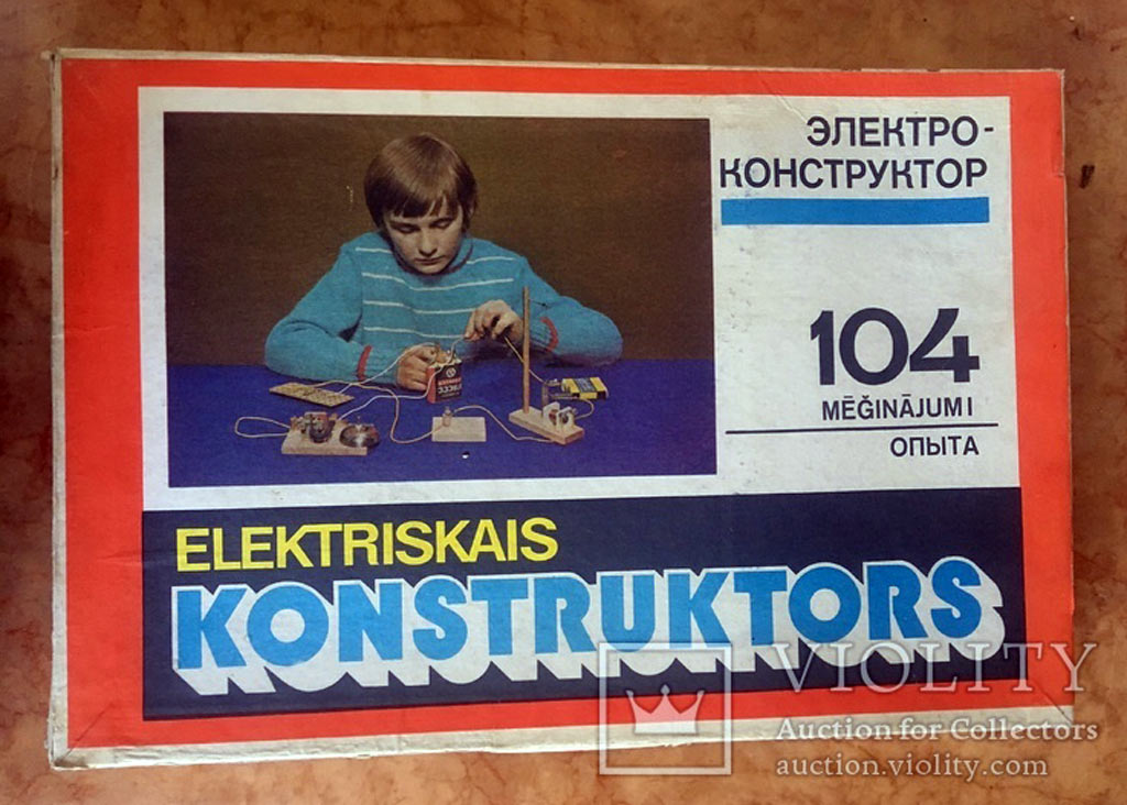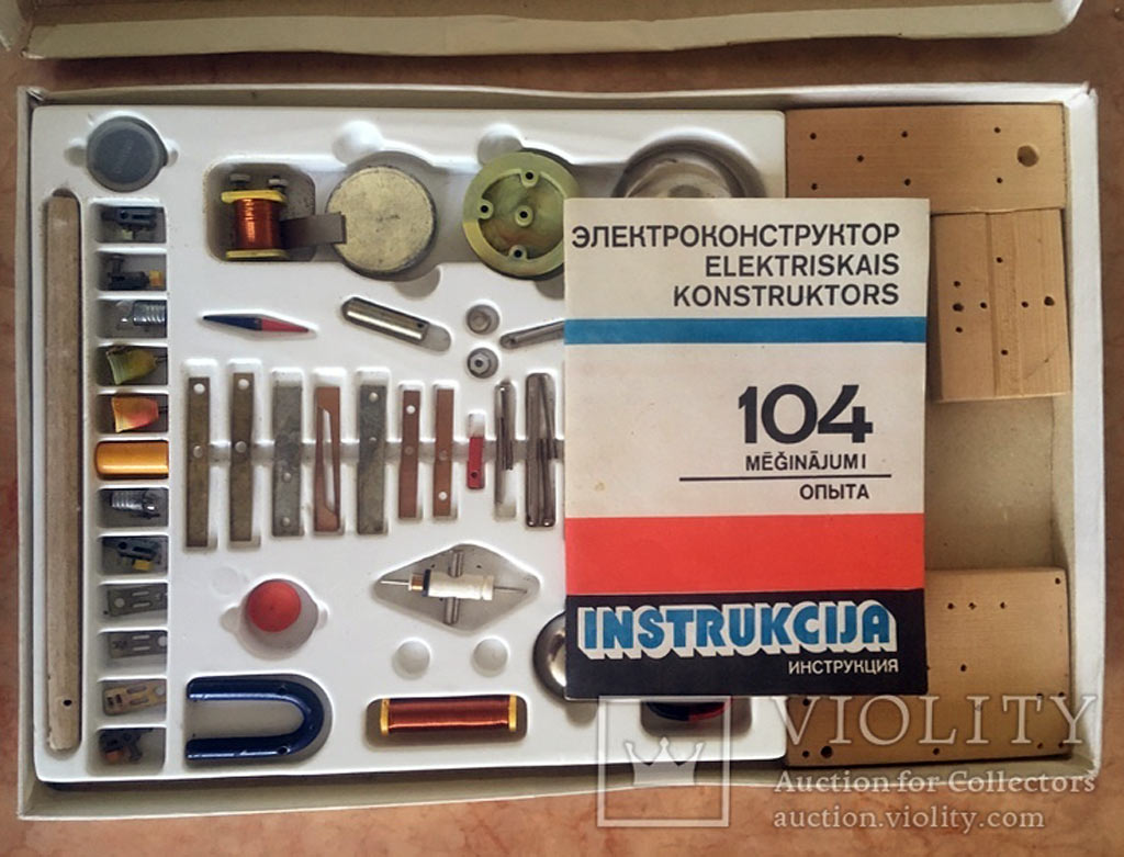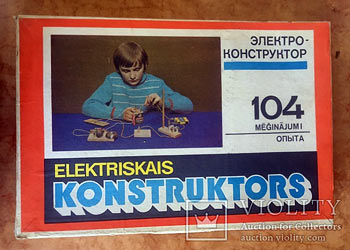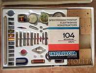 Электроконструктор "104 опыта" выпускался предположительно с 1970 года Рижским предприятием. Подробнее о наборе в сканах и на фото.