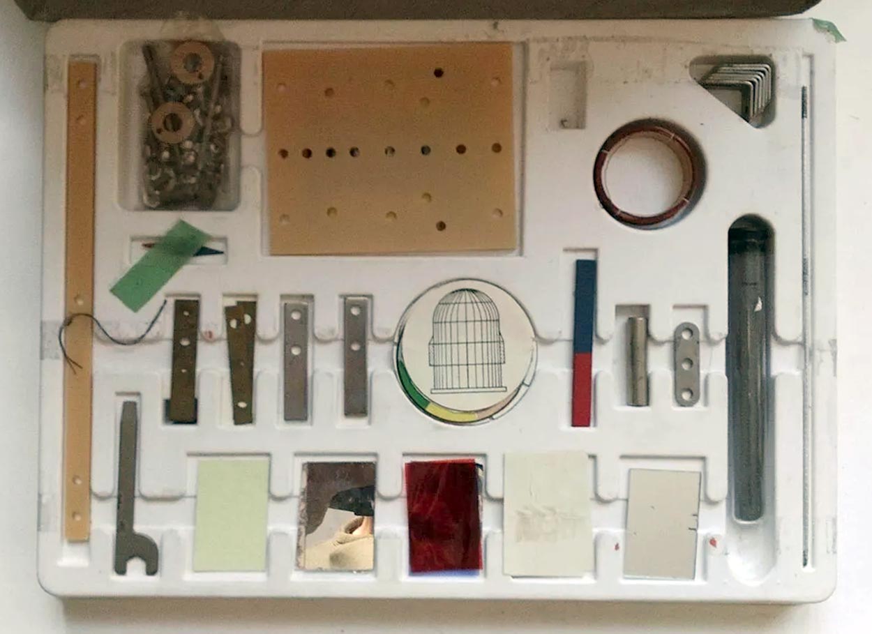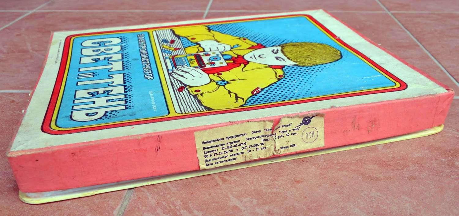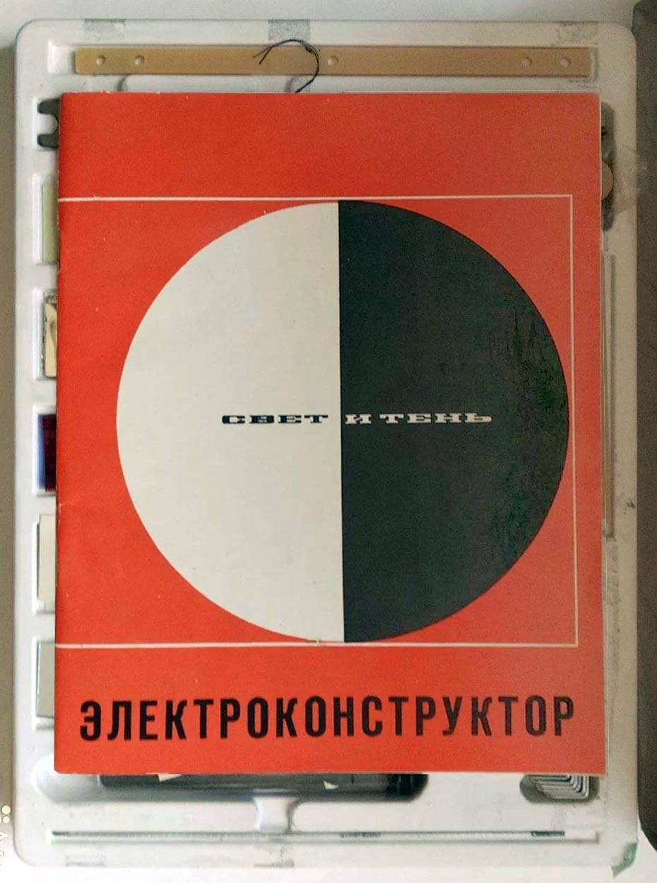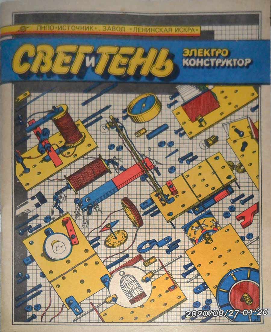 Электроконструктор "Свет и тень" выпускался предположительно с 1973 года Ленинградским заводом "Ленинская Искра". 78 опытов по оптике, механике и электричеству.