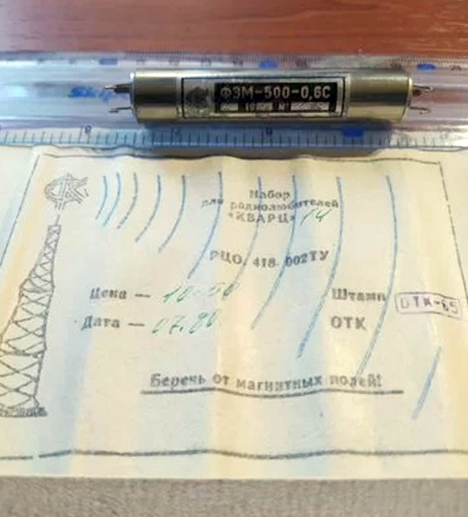 Набор для радиолюбителей "Кварц-14" возможно с 1980 года выпускал з/д "Кратон", г. Коммунарск, УССР. Содержит ФЭМ-500-0,6С. Цена 10 руб. 50 коп.