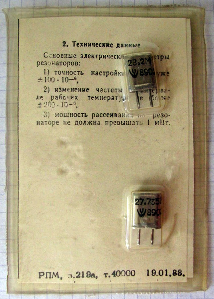 Набор для радиолюбителей "Кварц-17Г" выпускался возможно с 1980 года. Содержит 2 кварцевых резонатора на частоты 27735 кГц и 28200 кГц.
