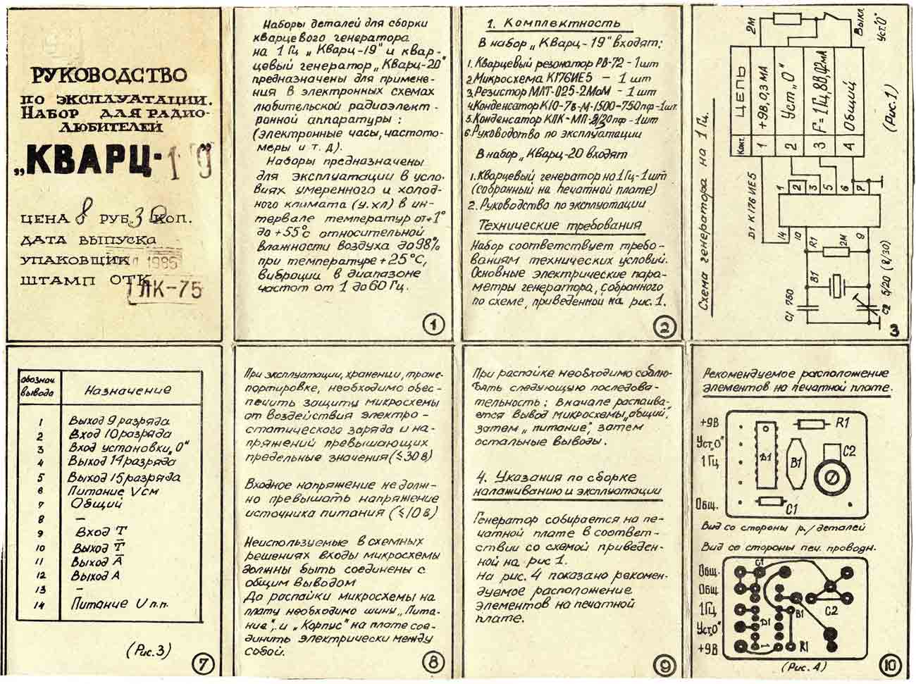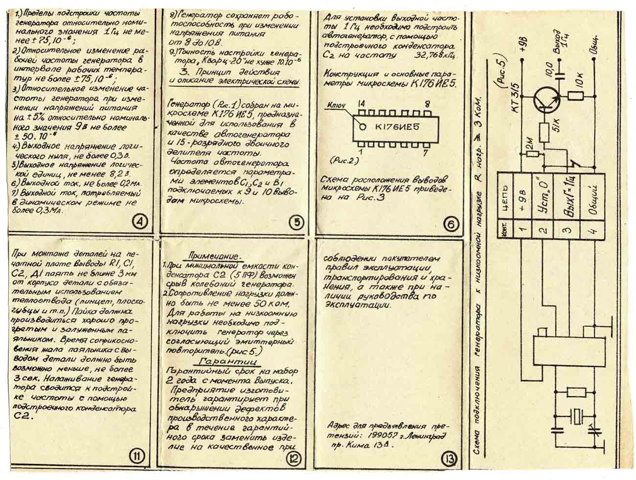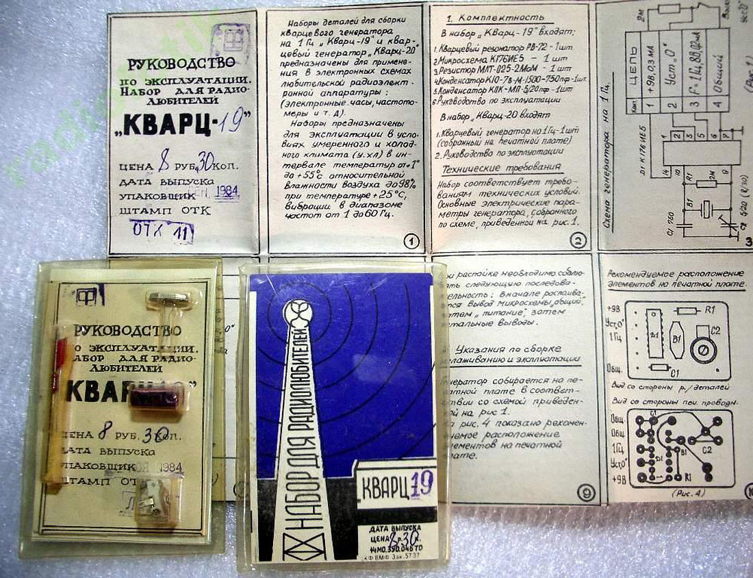 кварцевого генератора на частоту 1 Гц. В наборе все детали, кроме печатной