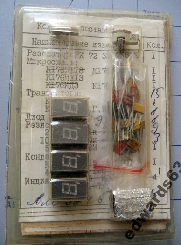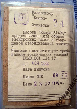 Радионабор "Кварц-34" выпускался предположительно с 1987 года. Набор предназначен для сборки электронных часов с кварцевой стабилизацией частоты.